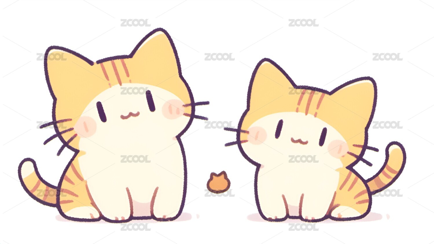 卡通,可爱,治愈,小猫,猫,动物,壁纸,插画,宠物