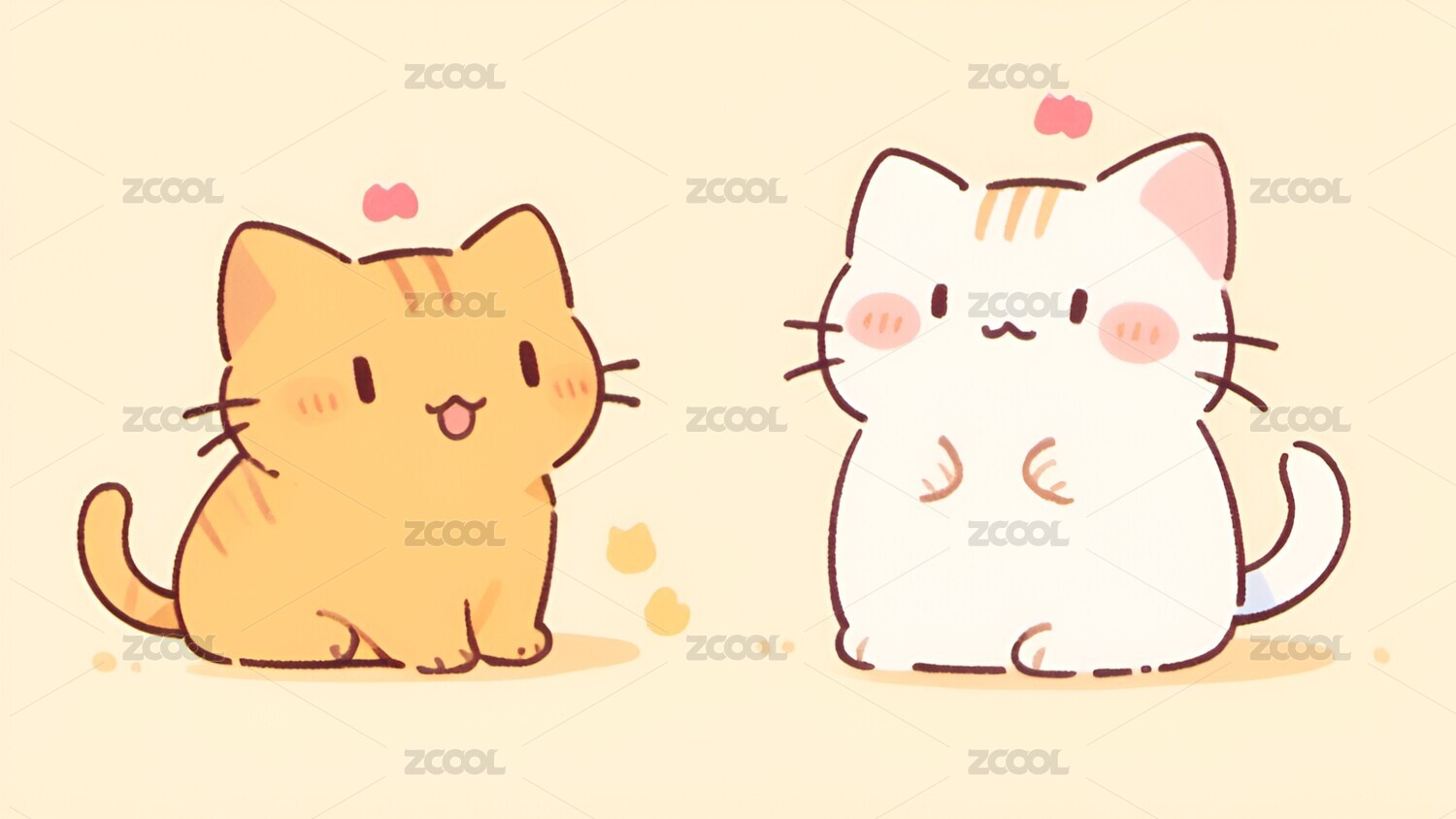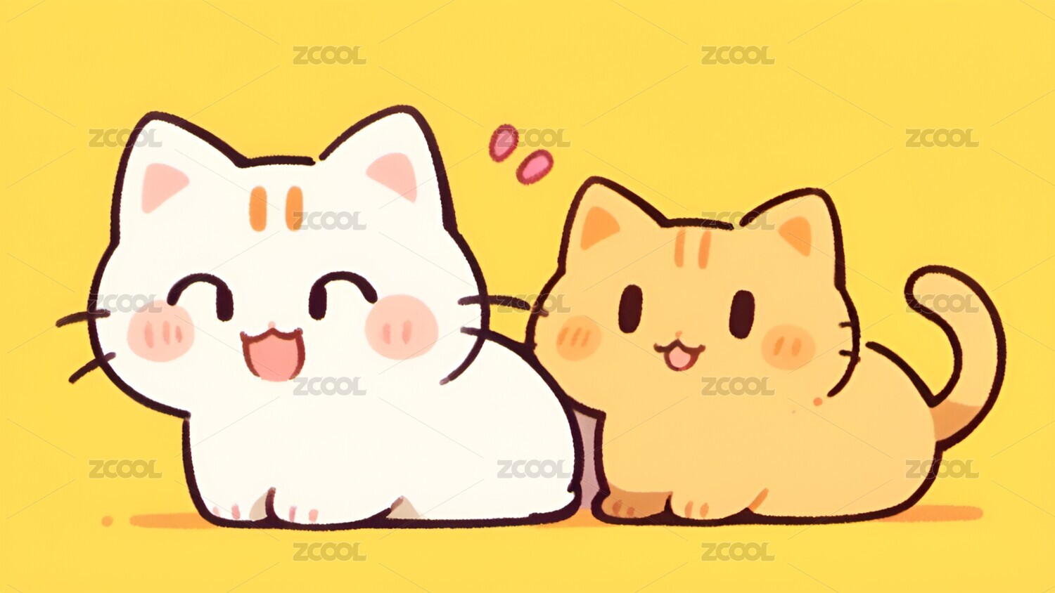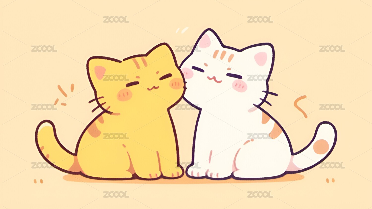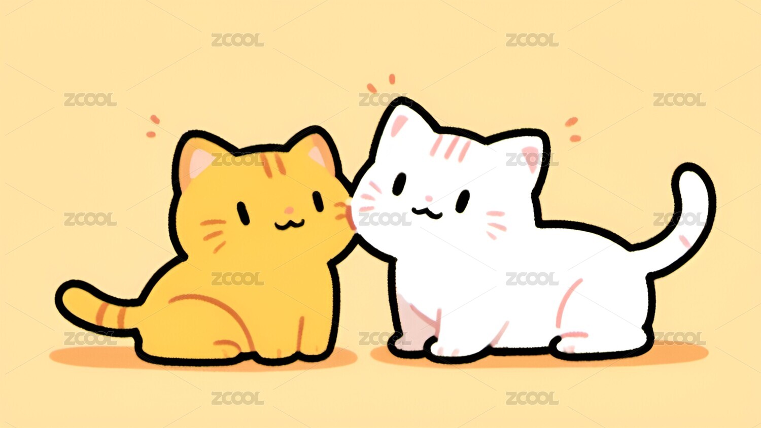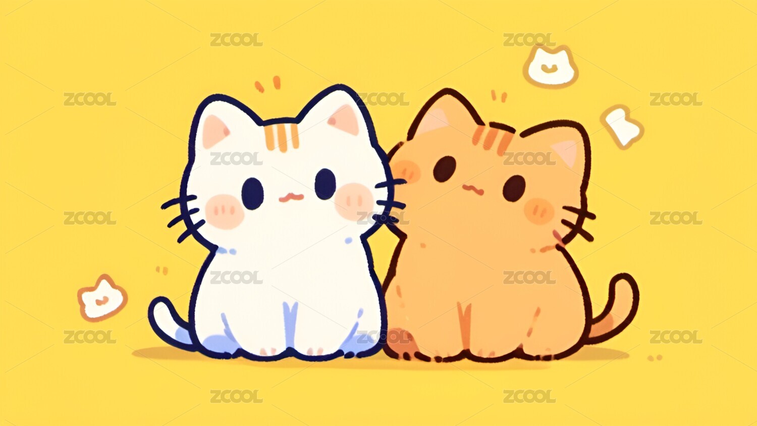 卡通,可爱,治愈,小猫,猫,动物,壁纸,插画,宠物