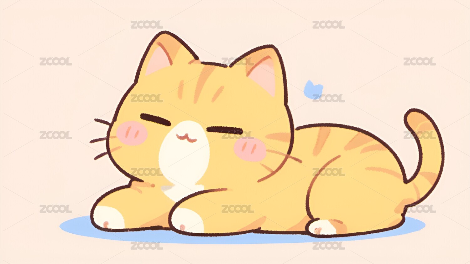 卡通,可爱,治愈,小猫,猫,动物,壁纸,插画,宠物