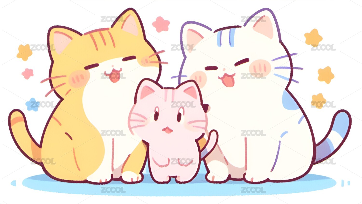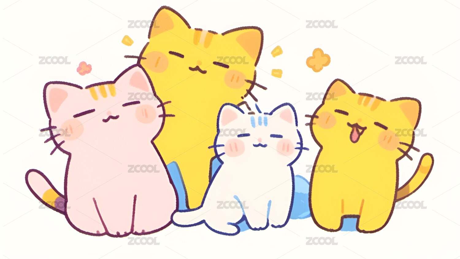 卡通,可爱,治愈,小猫,猫,动物,壁纸,插画,宠物