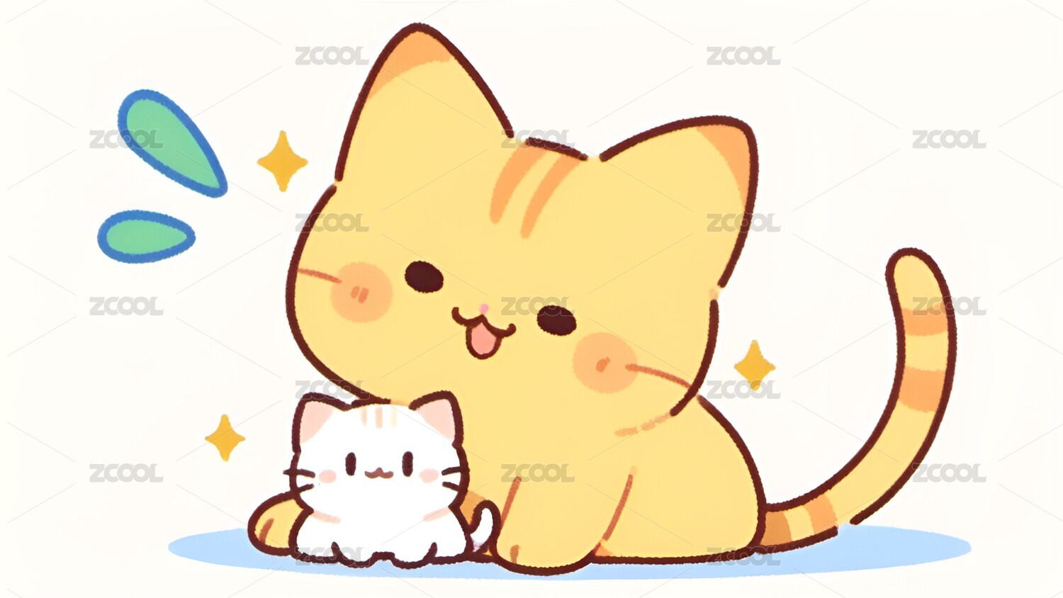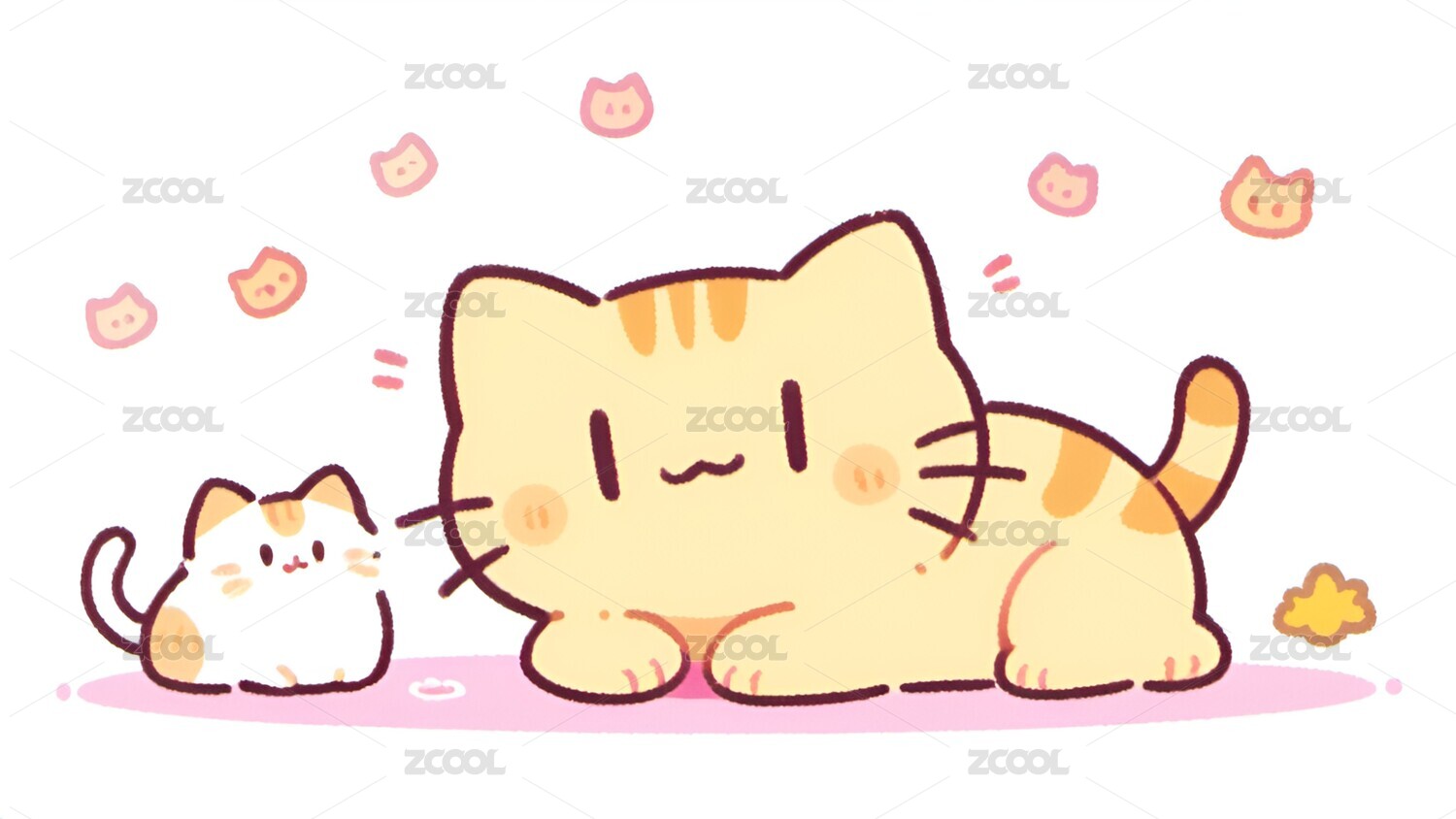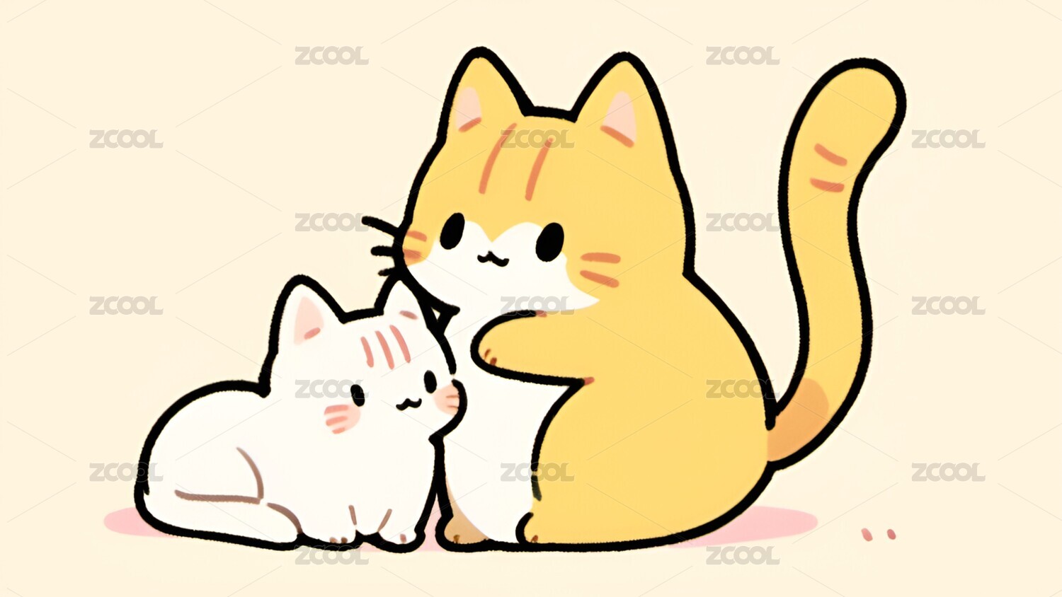 卡通,可爱,治愈,小猫,猫,动物,壁纸,插画,宠物