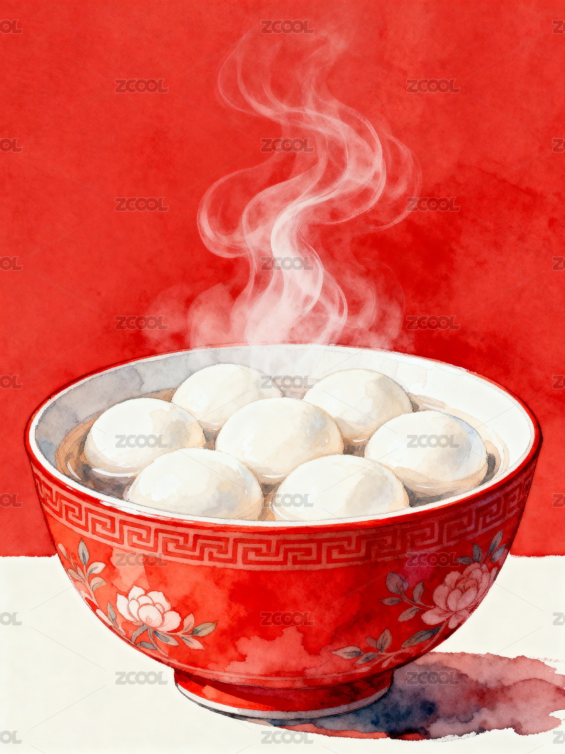 红色,圆形,装饰,白色,碗,食物,节日,中国结,新年,汤圆