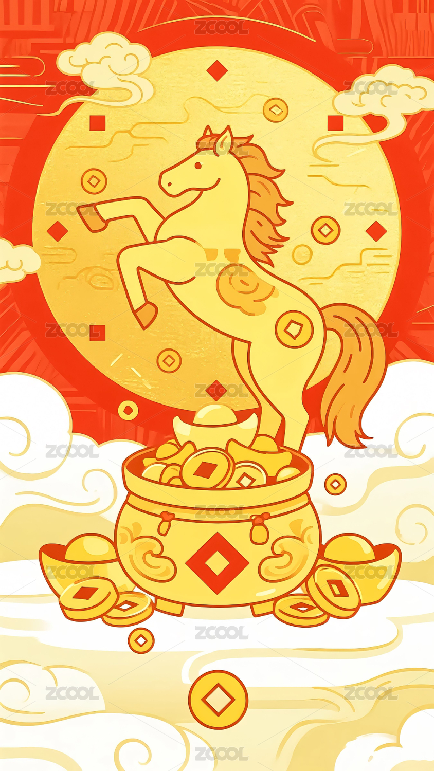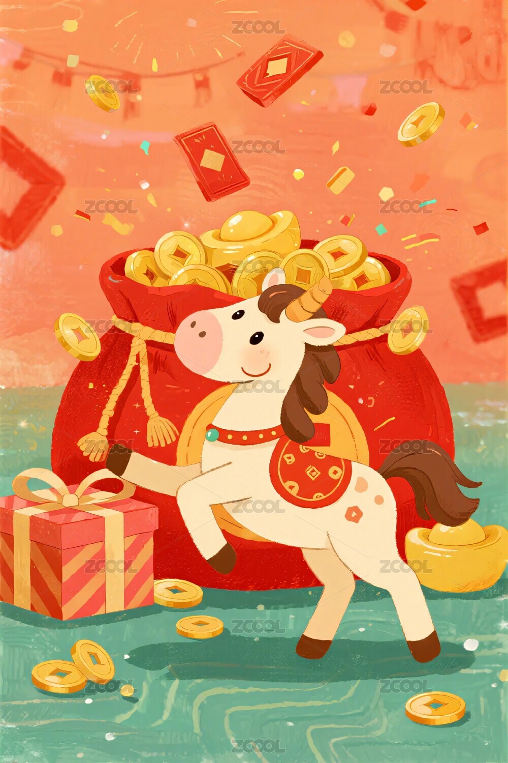 马年,马,新年,十二生肖,生肖马,过年,插画,海报,年历,国画