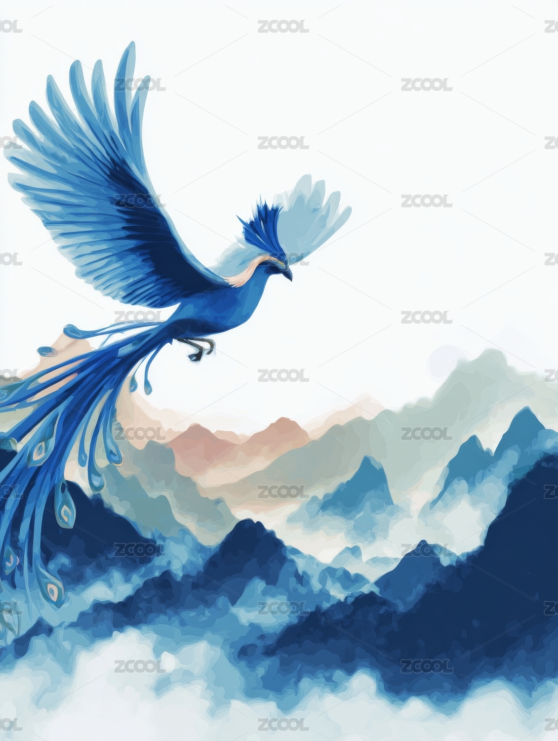 碧蓝凤凰在云海中翱翔的奇幻场景