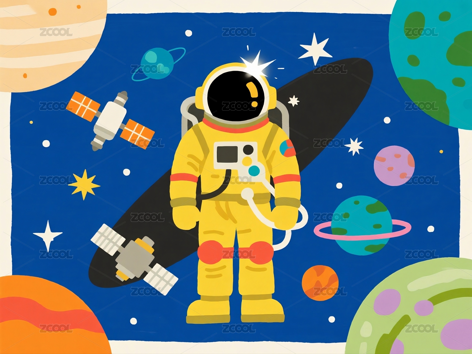 宇航员太空卡通插画