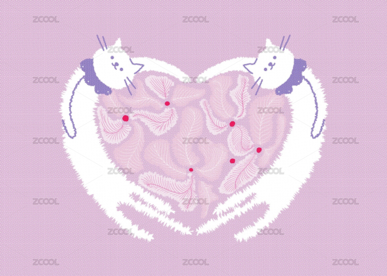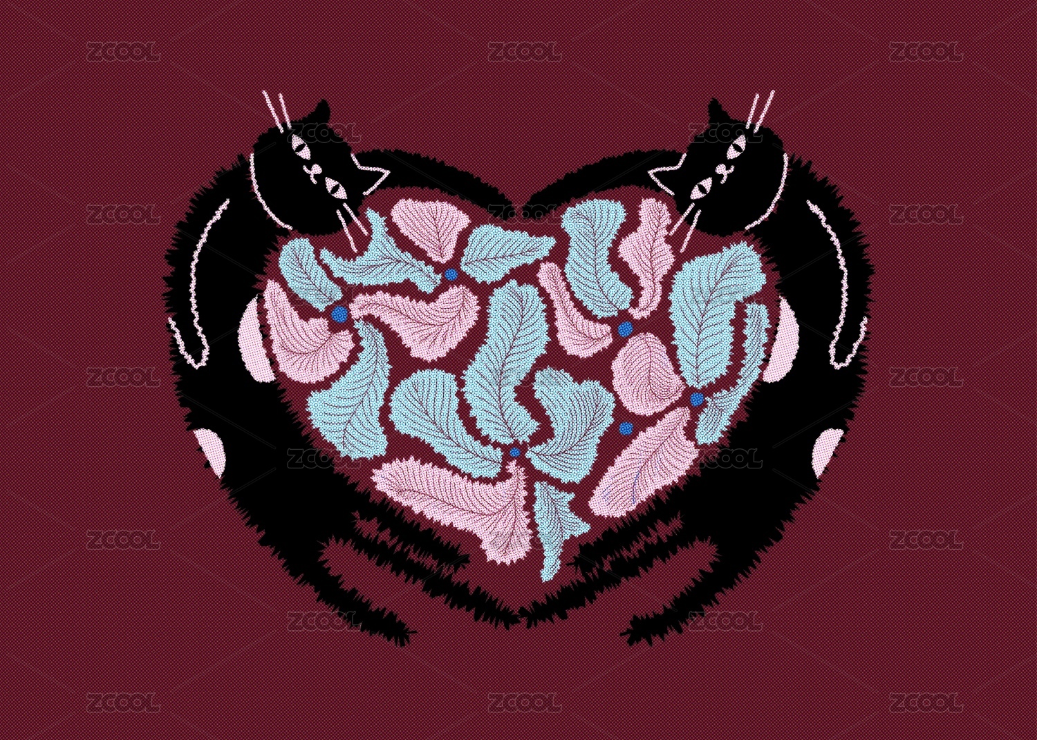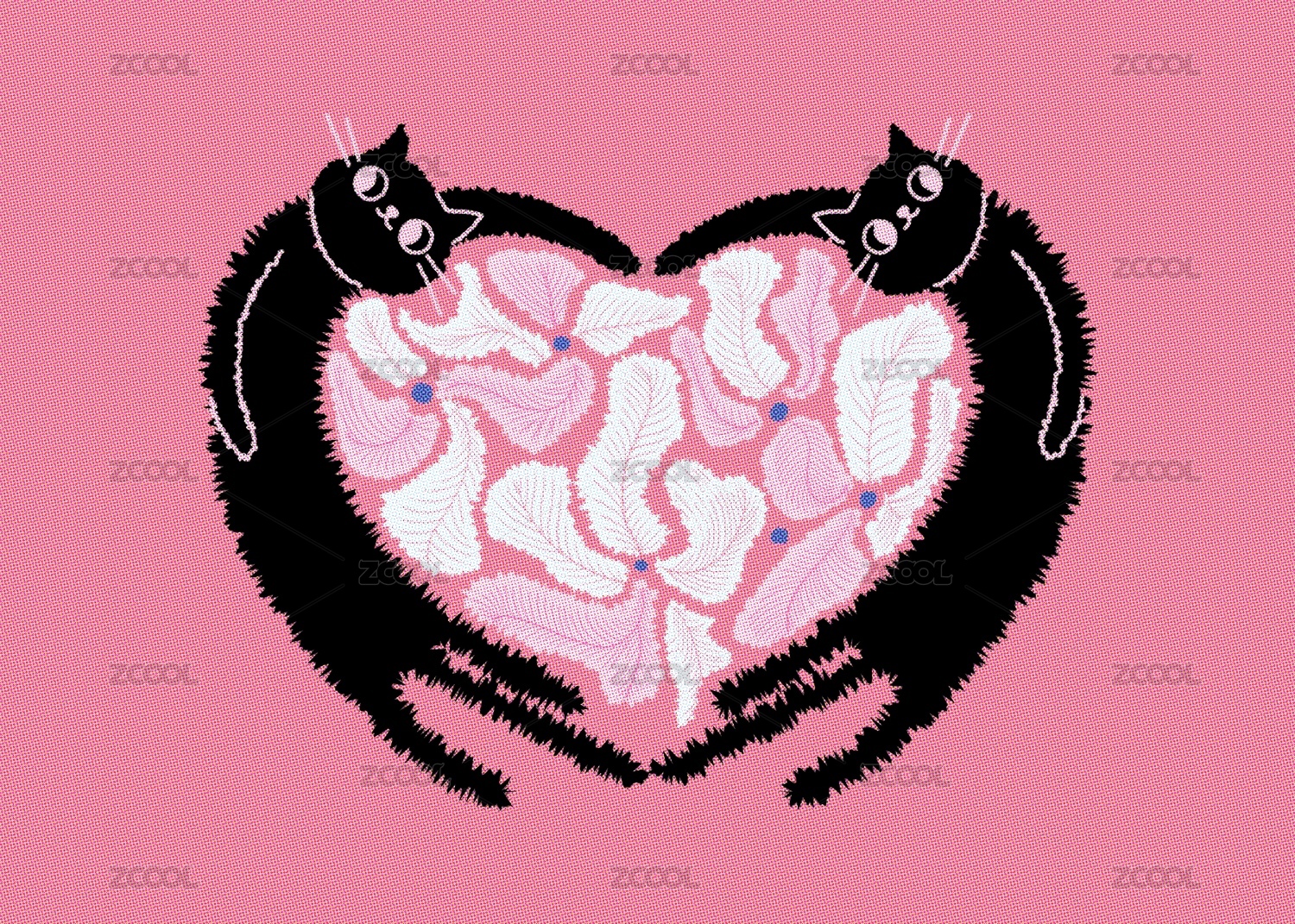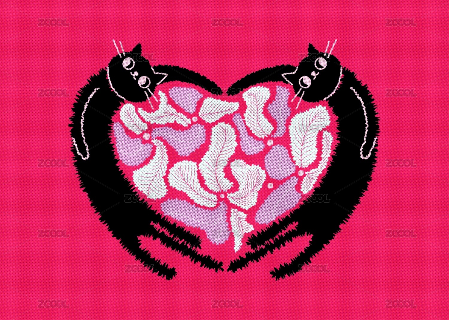 猫,爱心,插画,图案,印花,动物,宠物,可爱