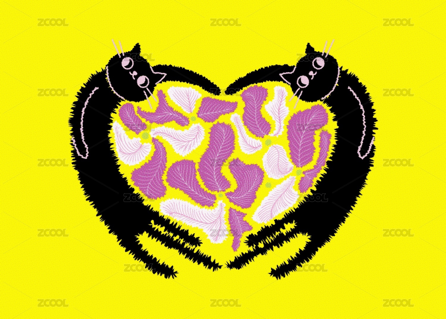 猫,插画,可爱,动物,宠物,印花,图案,卡通,包装,包装图案