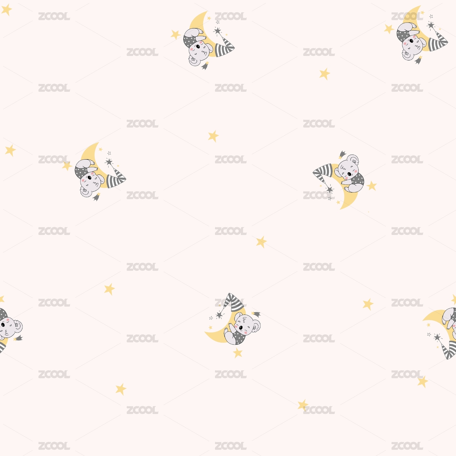 儿童可爱手绘宇宙飞船恐龙小怪物无缝印花