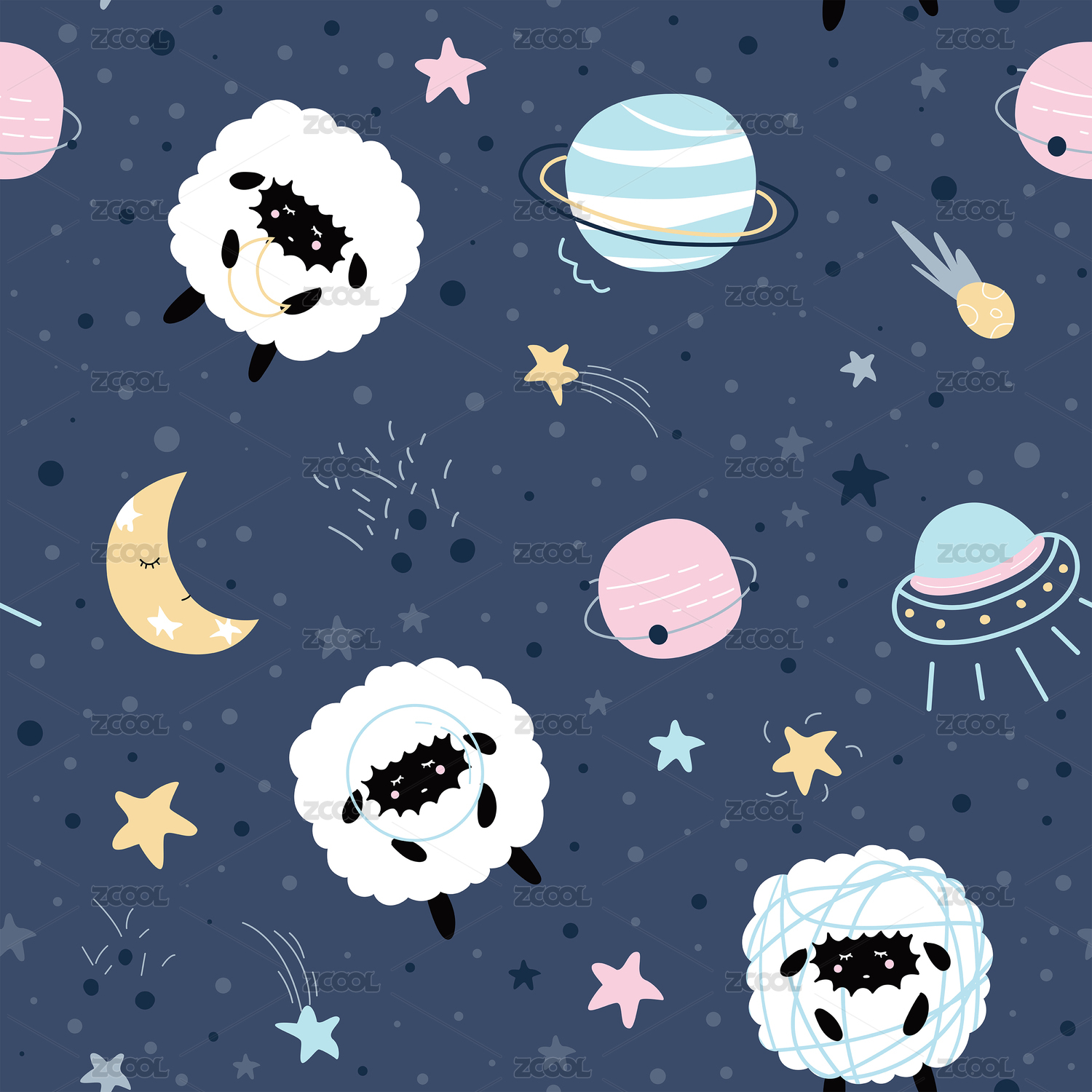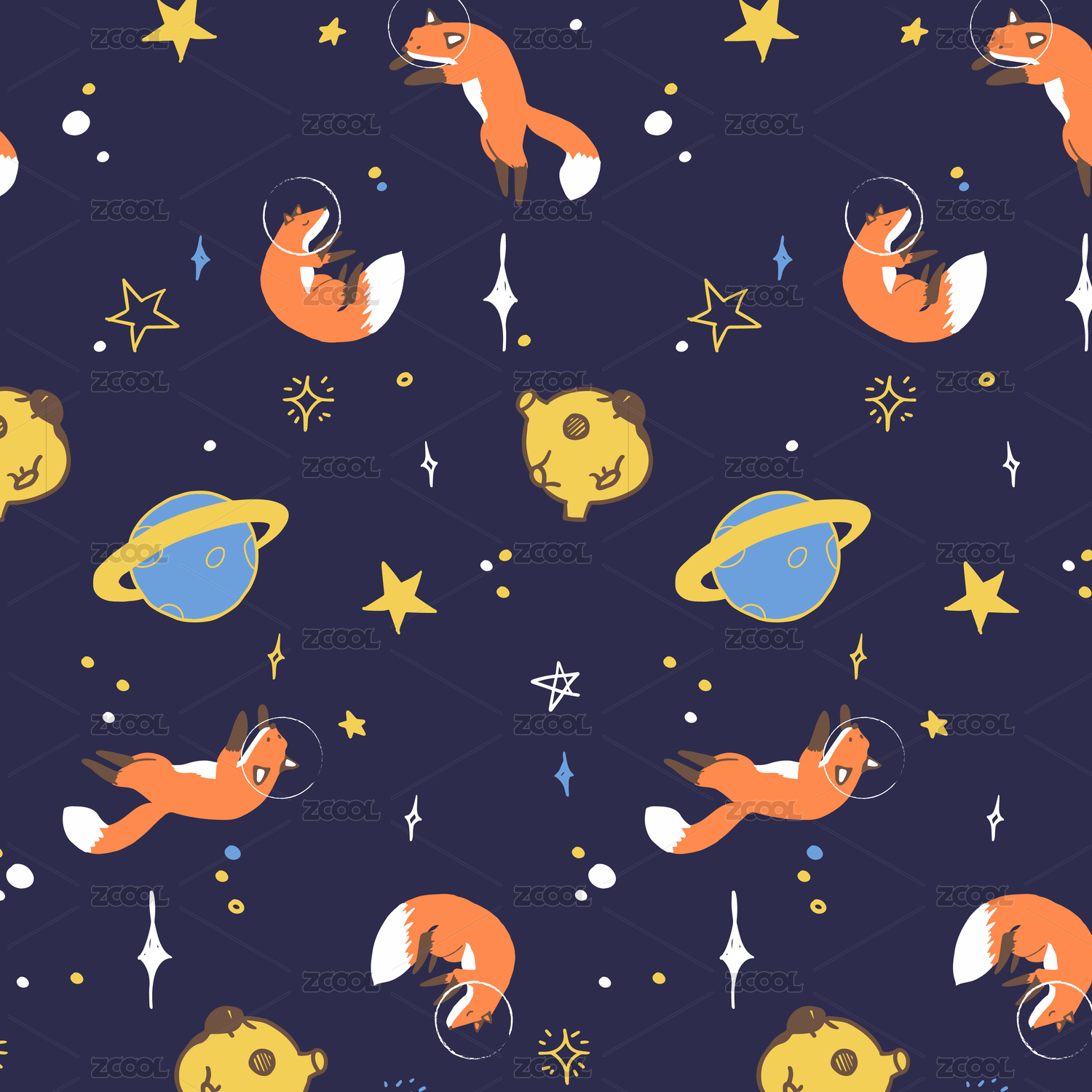 儿童可爱手绘风格宇宙飞船宇航员无缝印花
