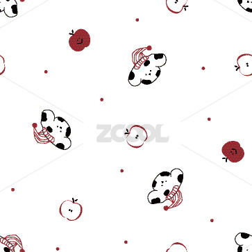 儿童可爱手绘风格小狗苹果无缝印花图案