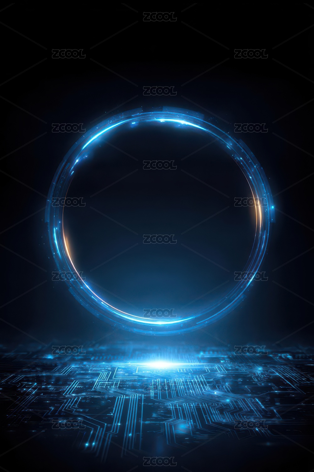 科技,电路,发光,蓝色,数字,虚拟,光环,光效,圆形,线条