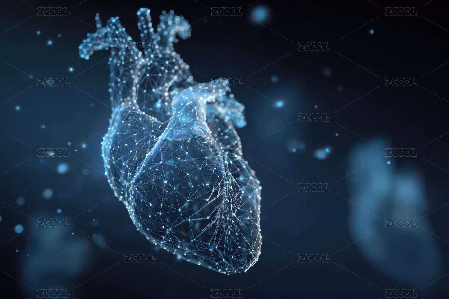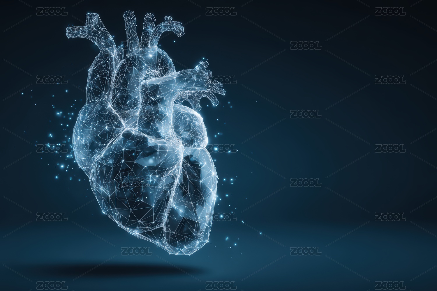 科技,蓝色,未来,光影,光点,线条,网络,立体,透明,心脏