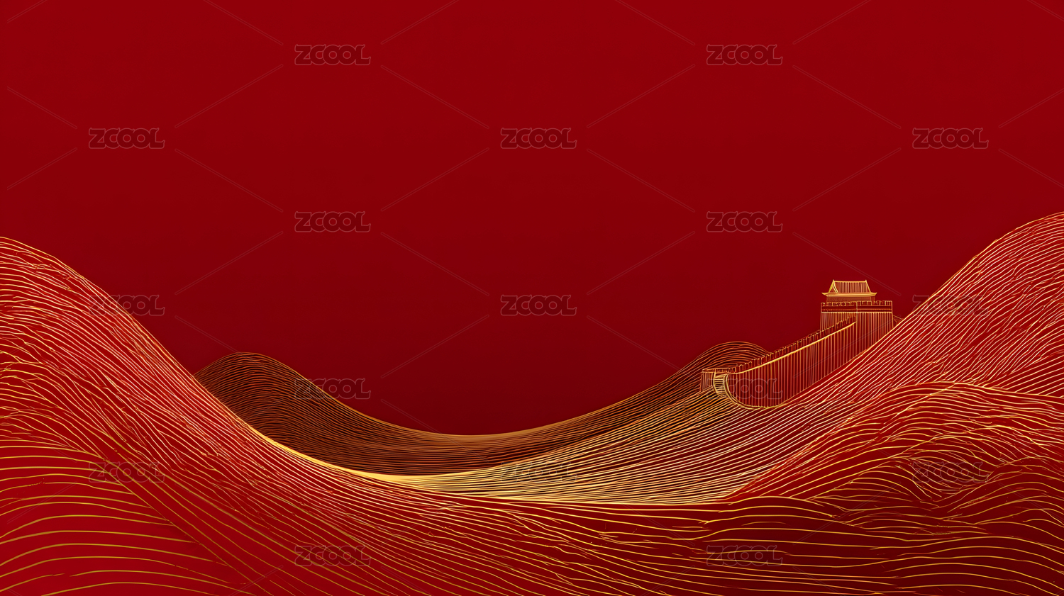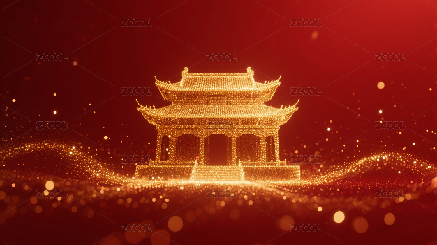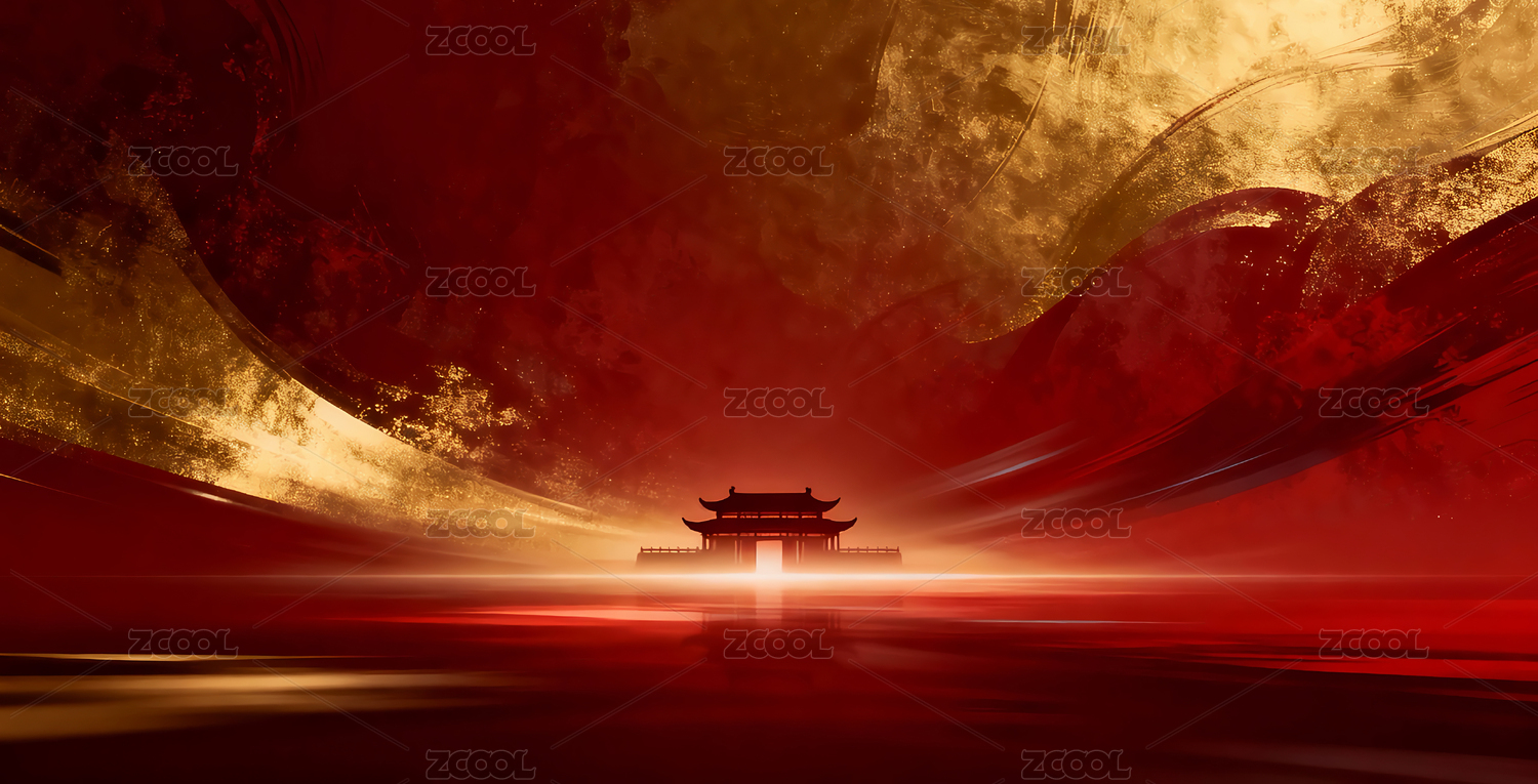 国潮,红金色,古建筑,背景,壁纸,商务,渐变,光影,艺术,古风