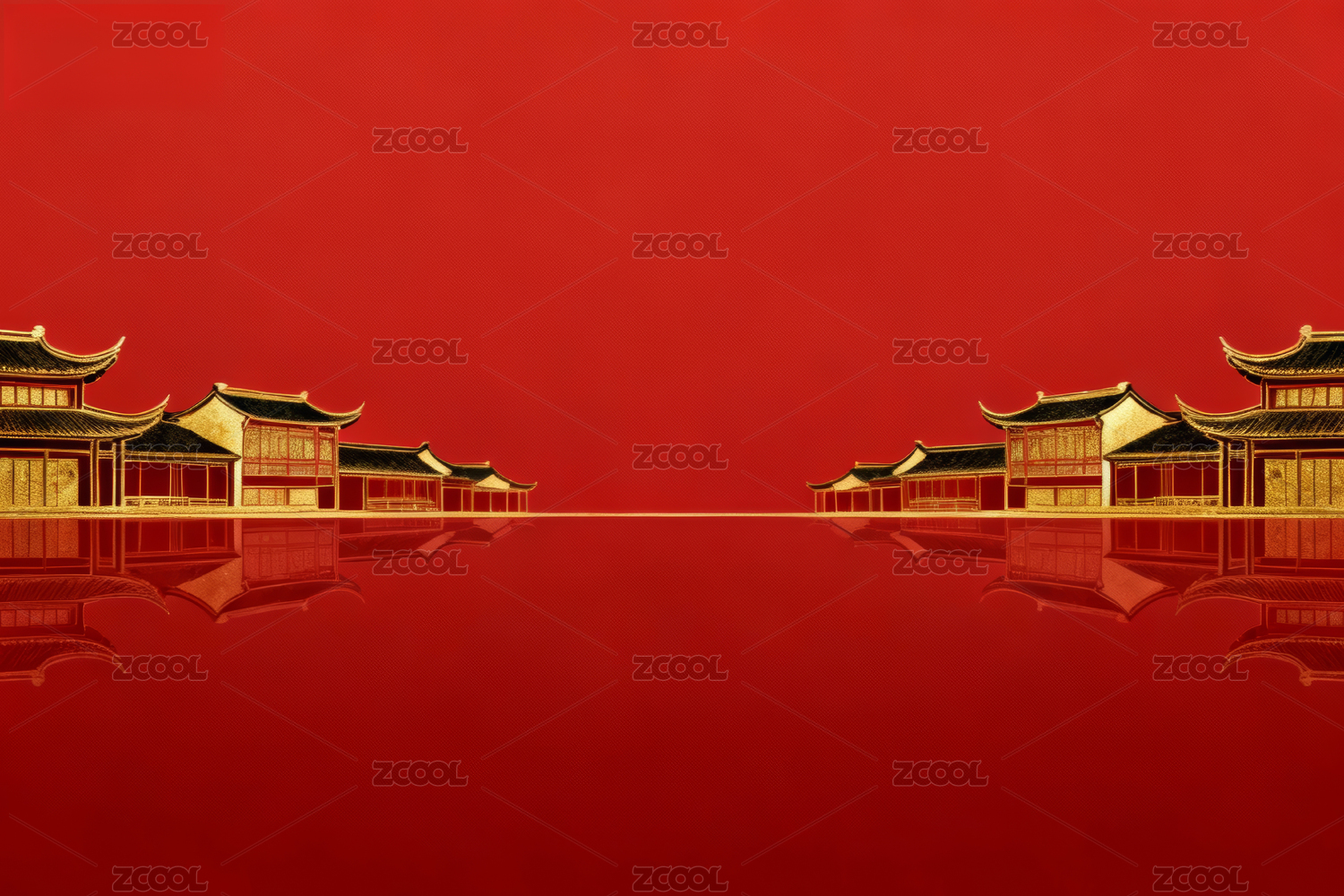 国潮,红金色,古建筑,背景,壁纸,商务,渐变,光影,艺术,古风