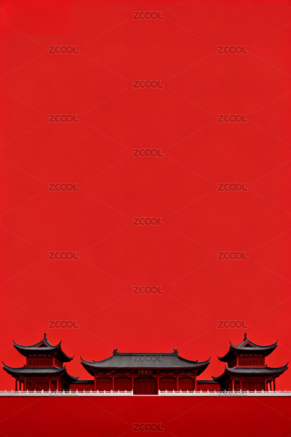 红色背景下的中式建筑