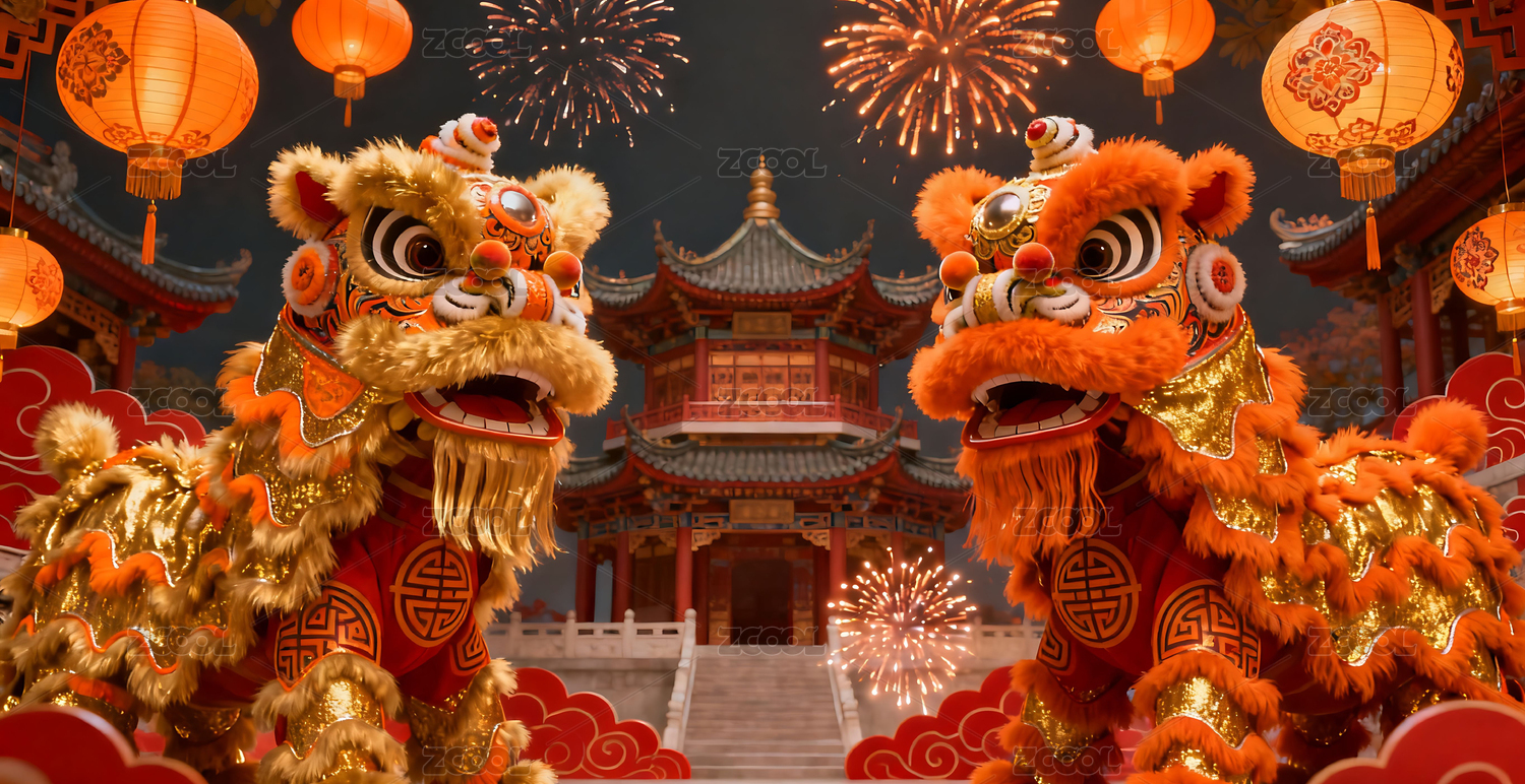 舞狮国潮庆典场景