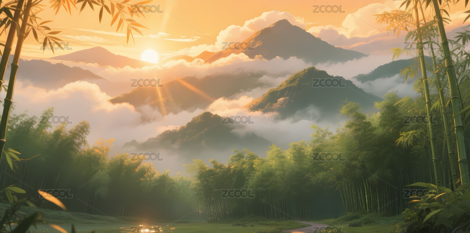 竹林山间云海日出
