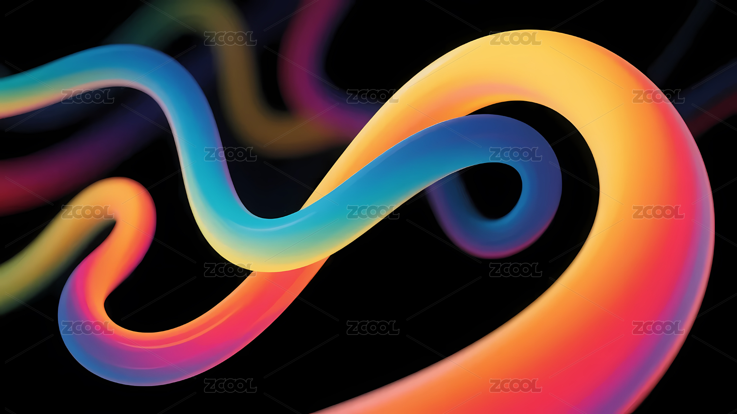 多彩渐变的波浪形状,霓虹光影模糊效果