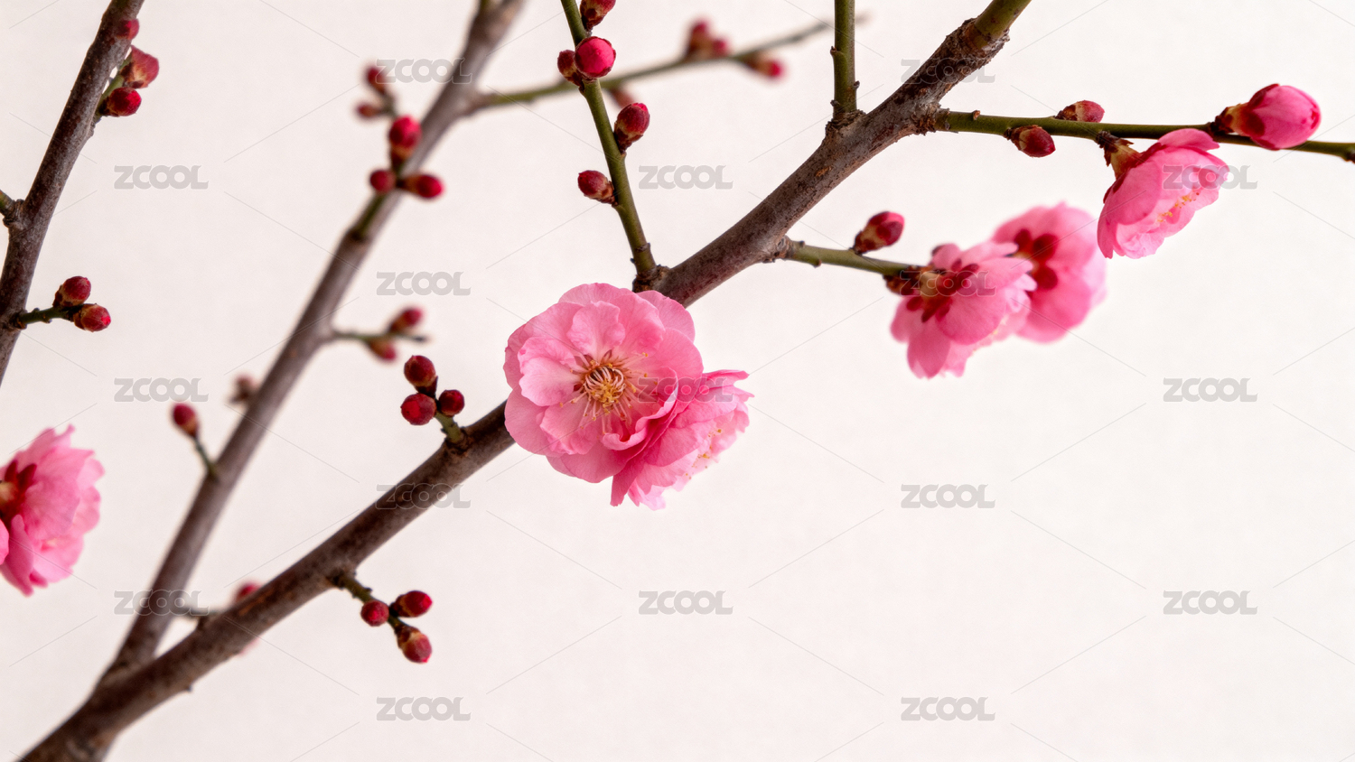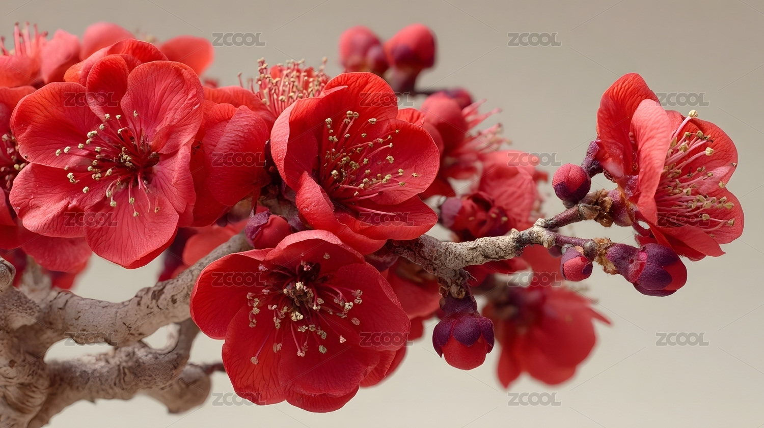 红梅,花朵,枝干,花蕾,白色,背景,绽放,红色,细枝,纹理