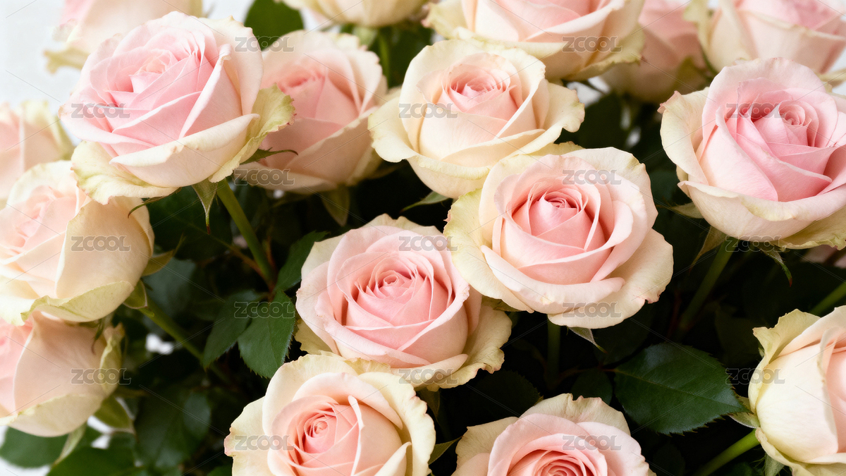 淡粉色玫瑰花束特写