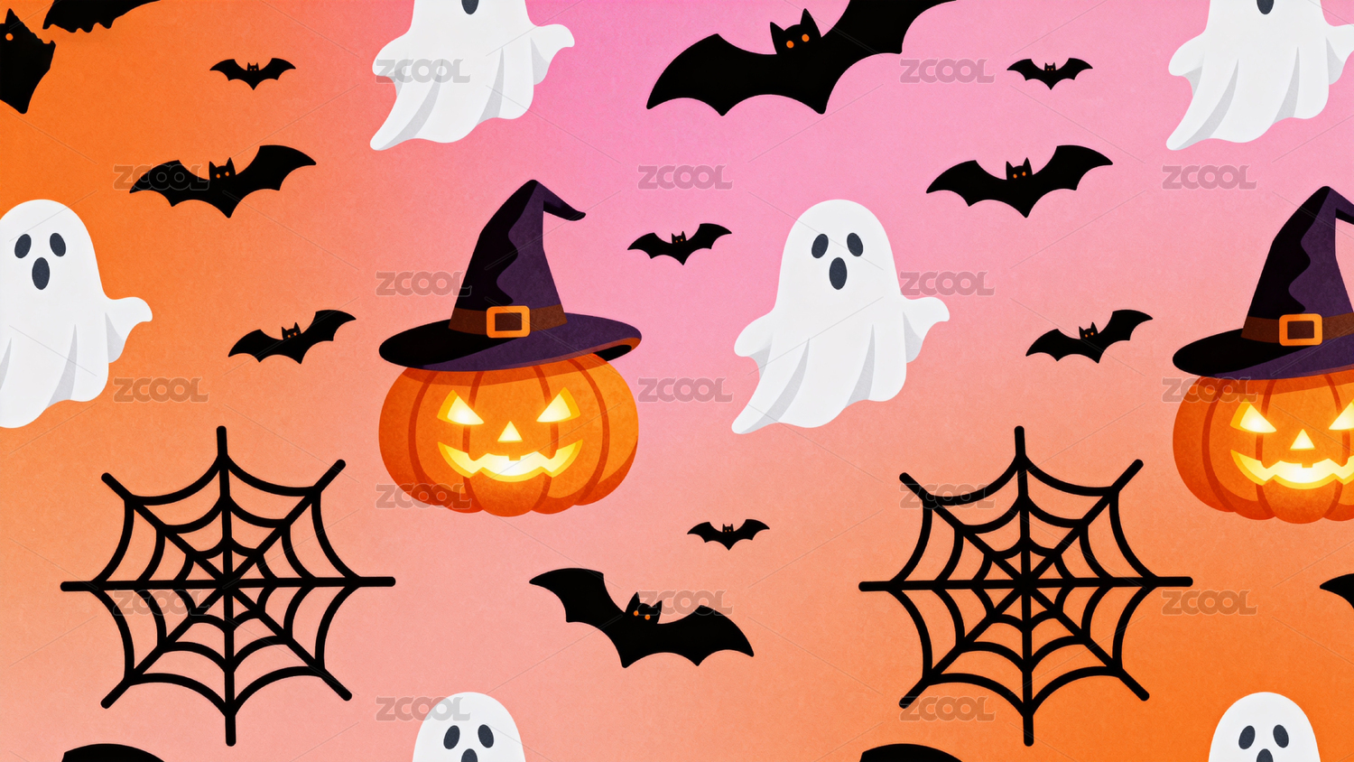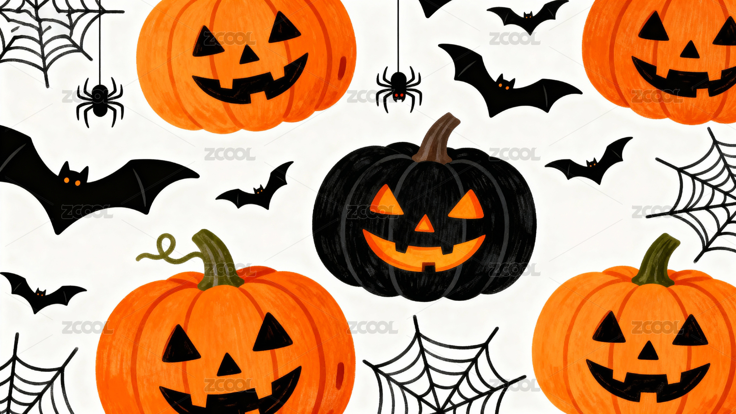 万圣节主题图案包含南瓜幽灵蝙蝠
