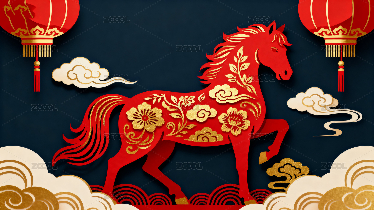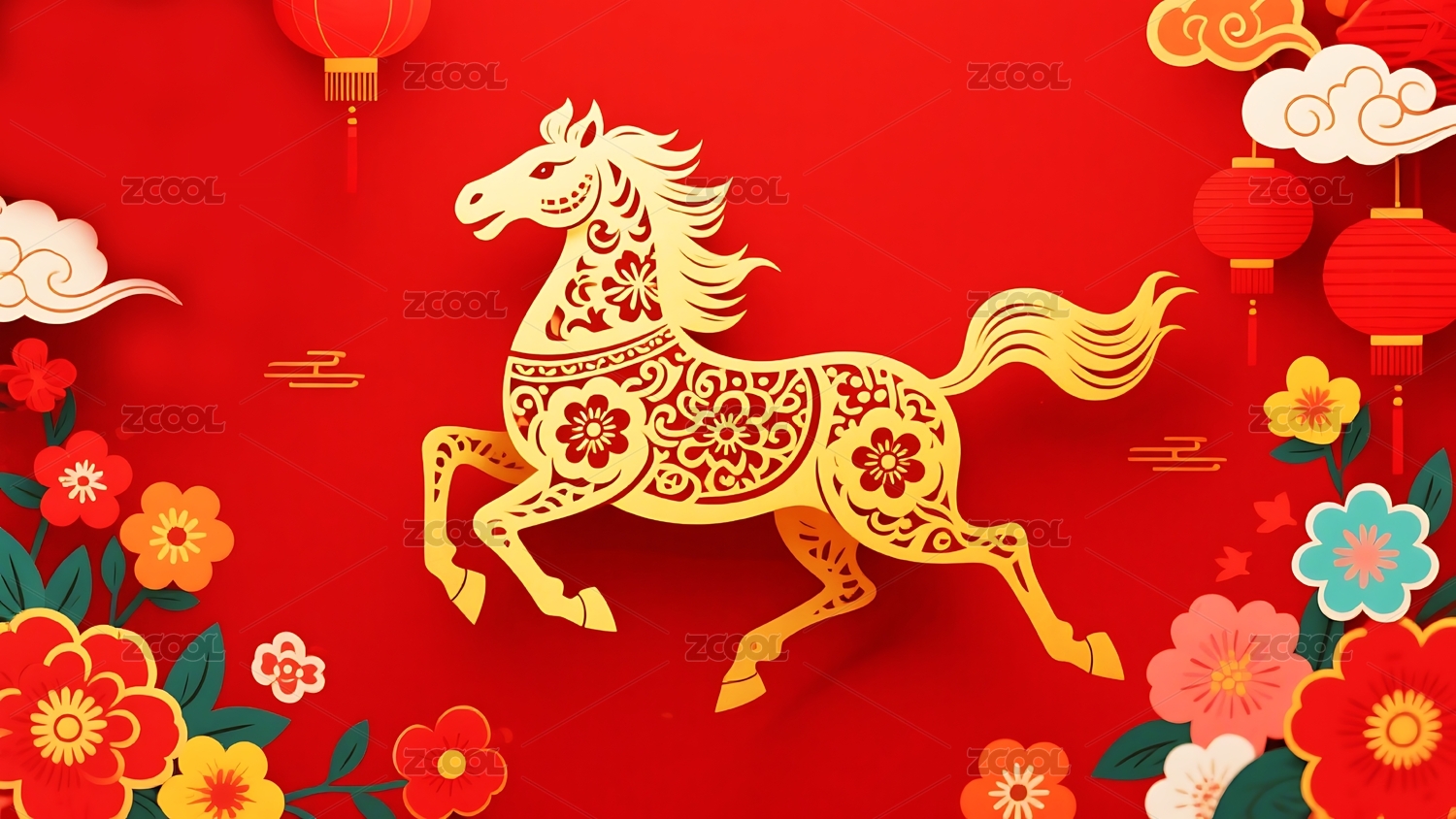 金马奔腾红色祥云背景