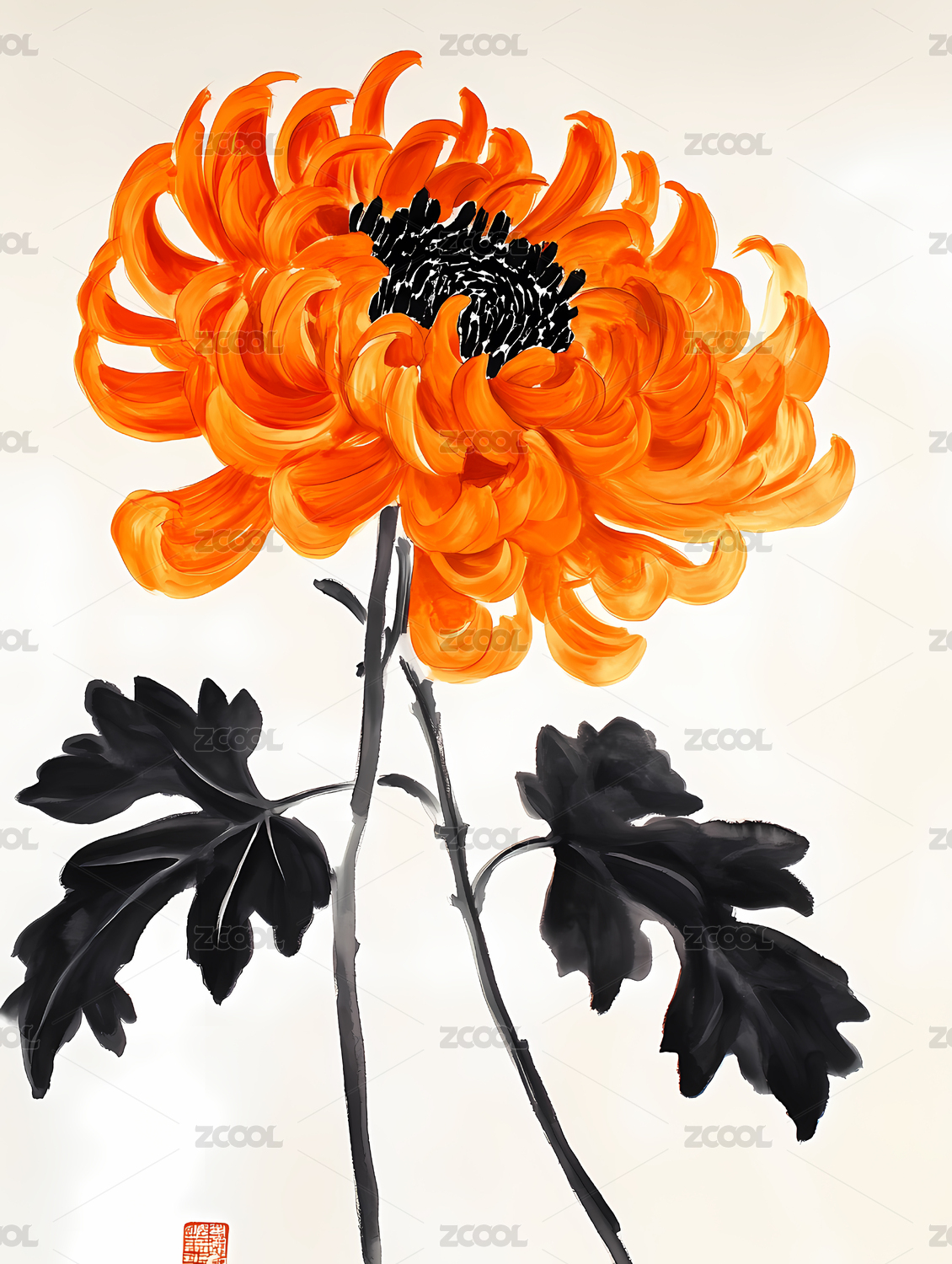 水墨画风格的橙色菊花