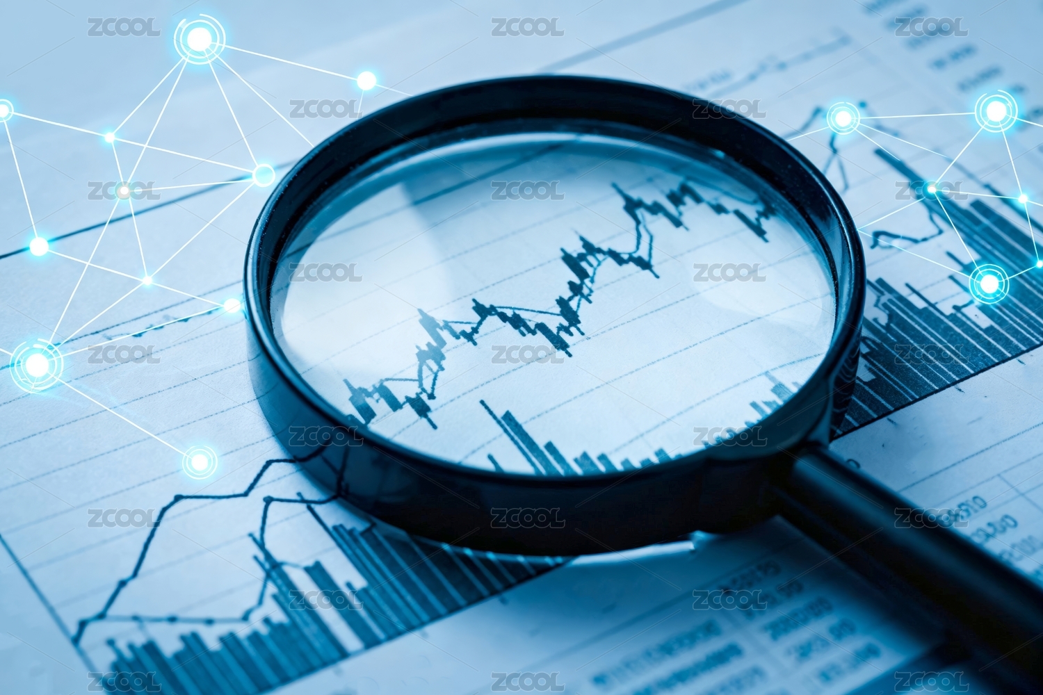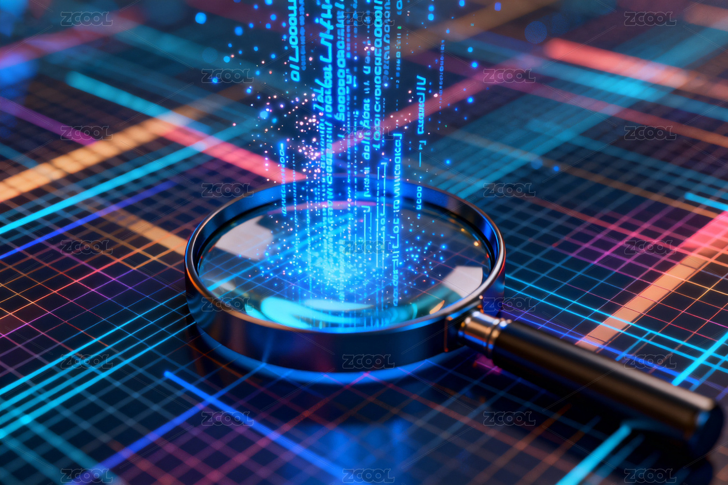 蓝色,科技,未来,光点,数字,网格,放大镜,探索,创新,数据