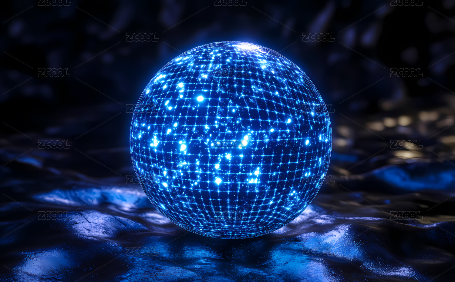 蓝色发光网格球体