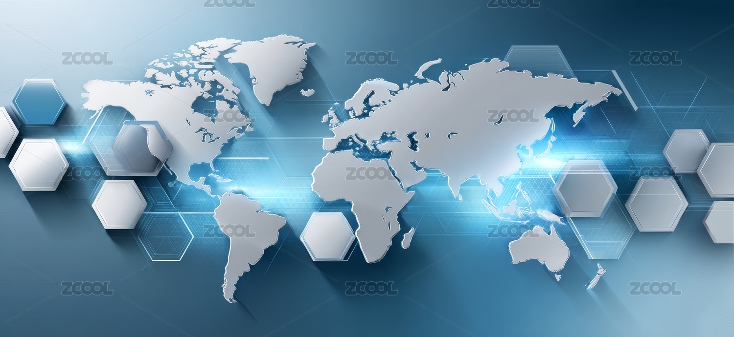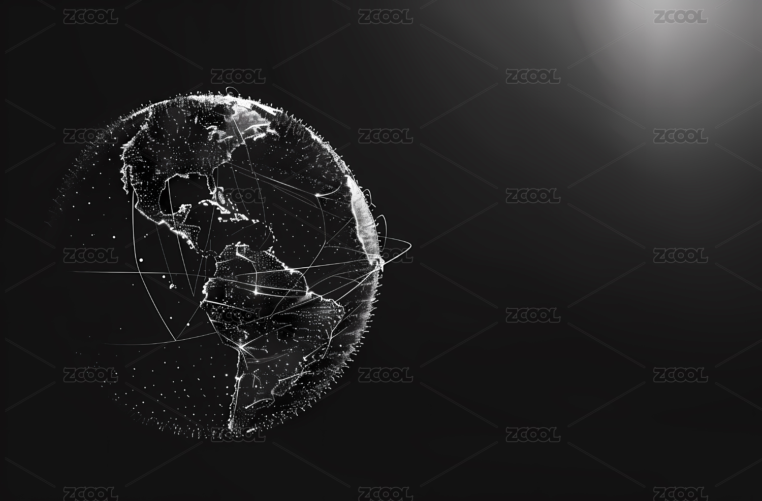 世界地图、全球化合作、点线组合、全球网络连接、3D立体地球。