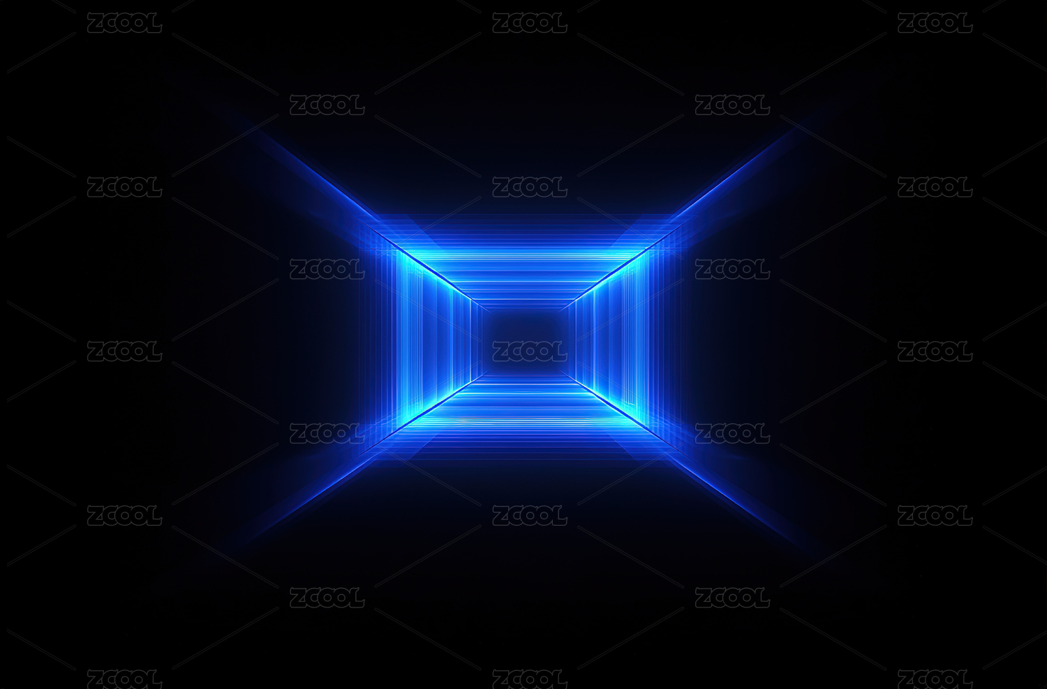 红蓝色霓虹灯环绕构成的发光通道隧道