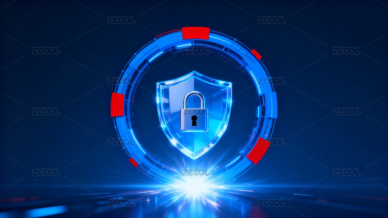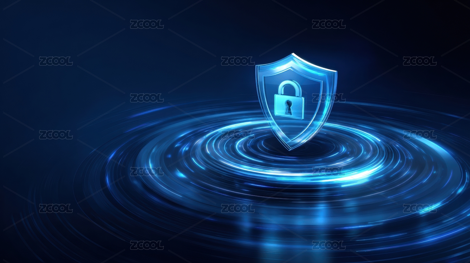 深蓝色科技悬浮半透明数据防护罩盾牌背景