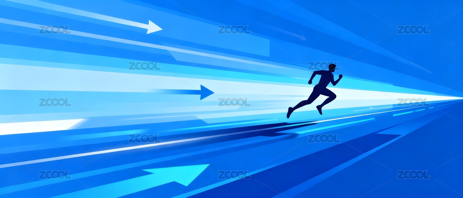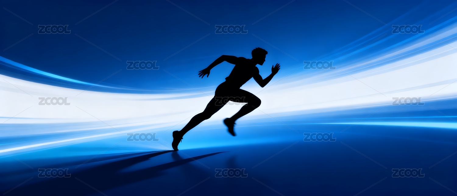 奔跑者剪影动感蓝色背景