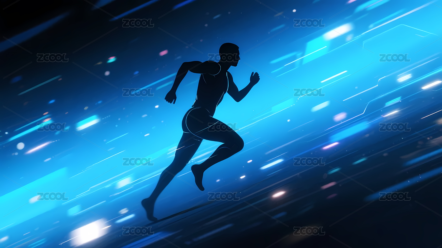 蓝色动感背景中奔跑的人影