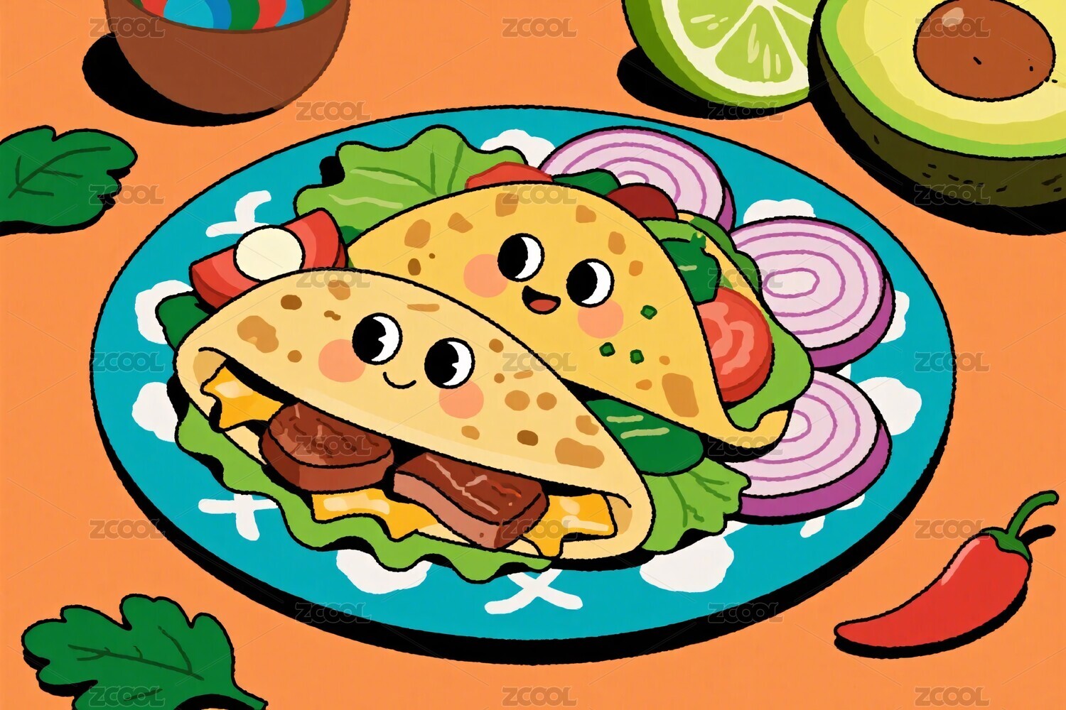 卡通墨西哥塔可插画