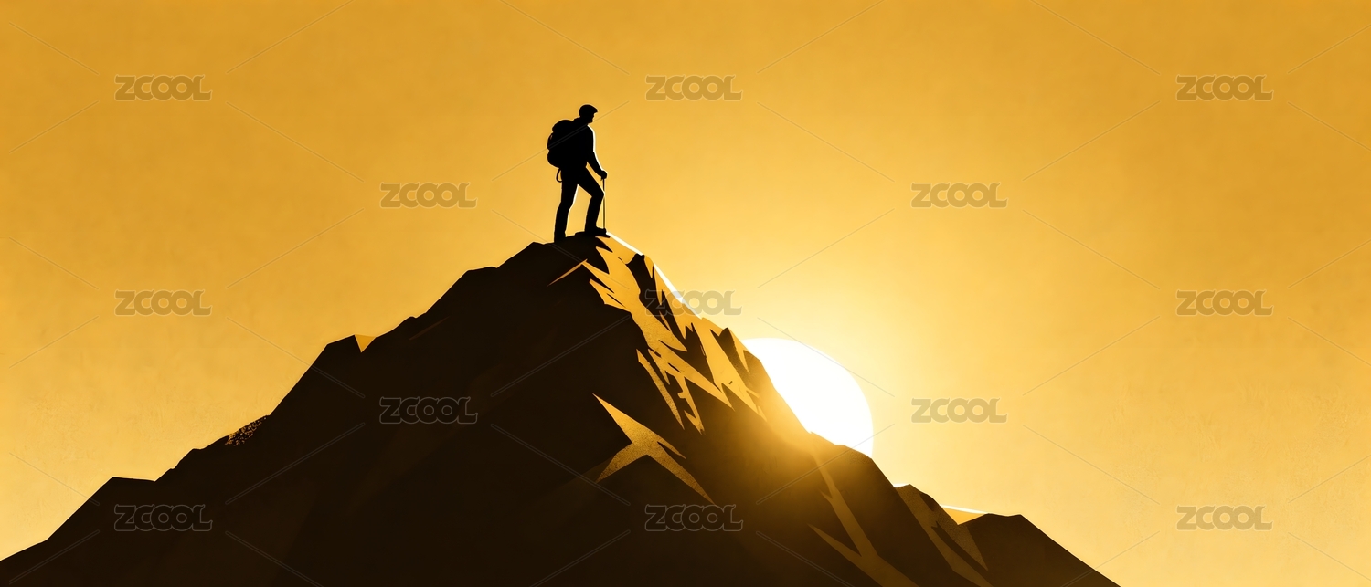 登上雪山顶的人物剪影