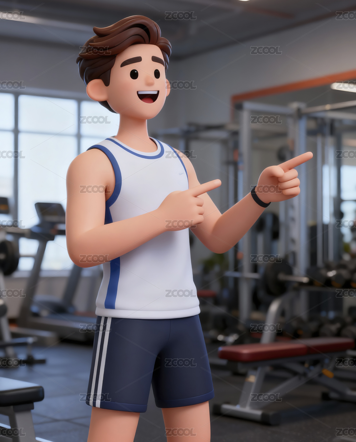 双手握哑铃的健身男孩盲盒手办3D卡通插画