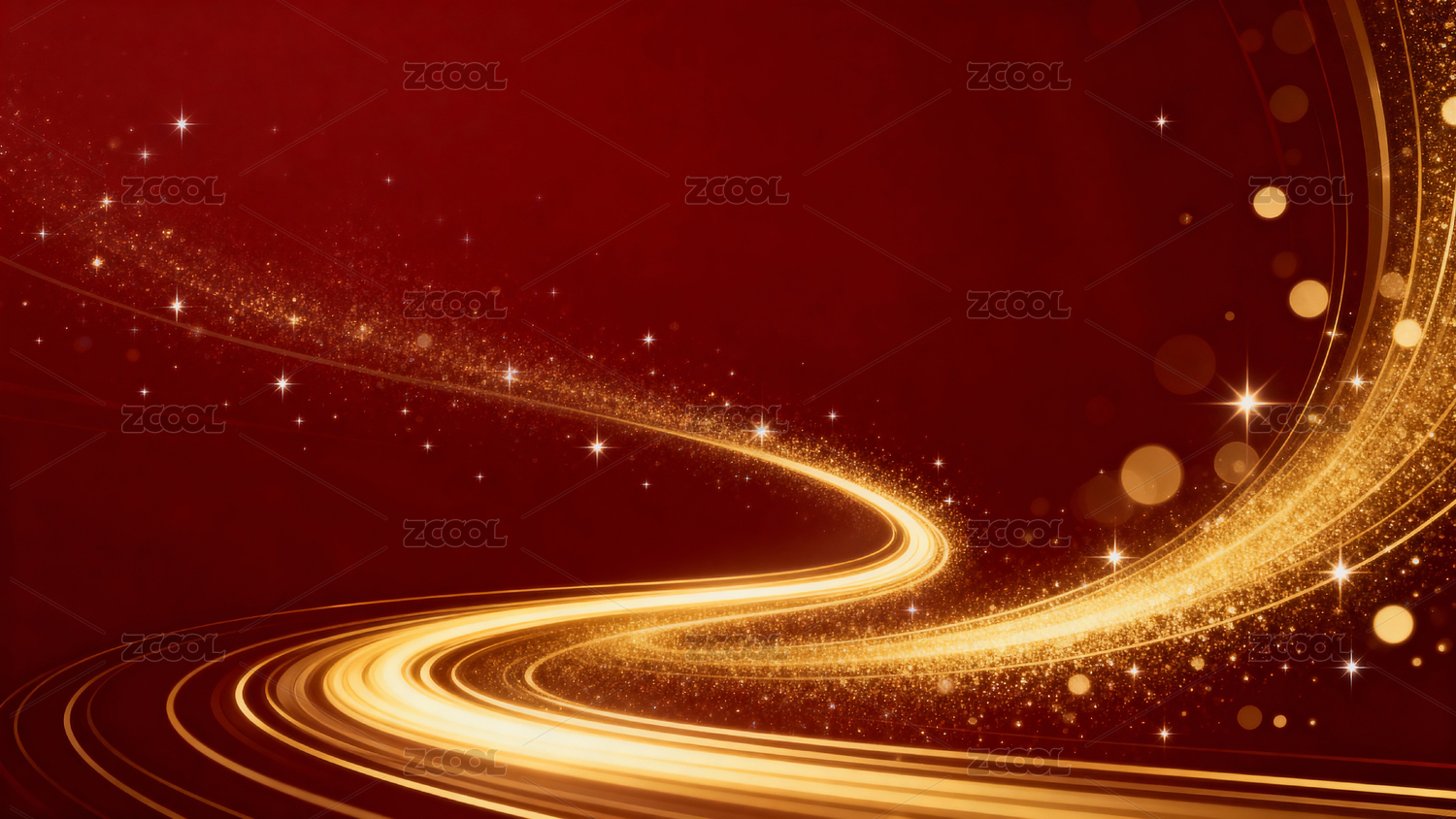 红色背景金色曲线星光闪烁