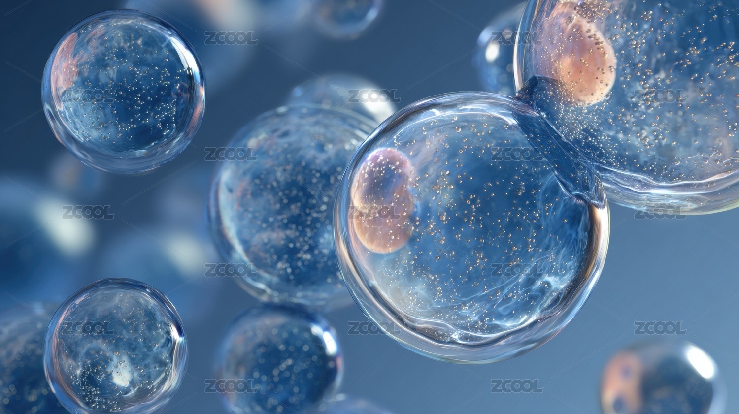 空间,蓝色,气泡,微观,画面,球体,圆润,质感,光泽,光影