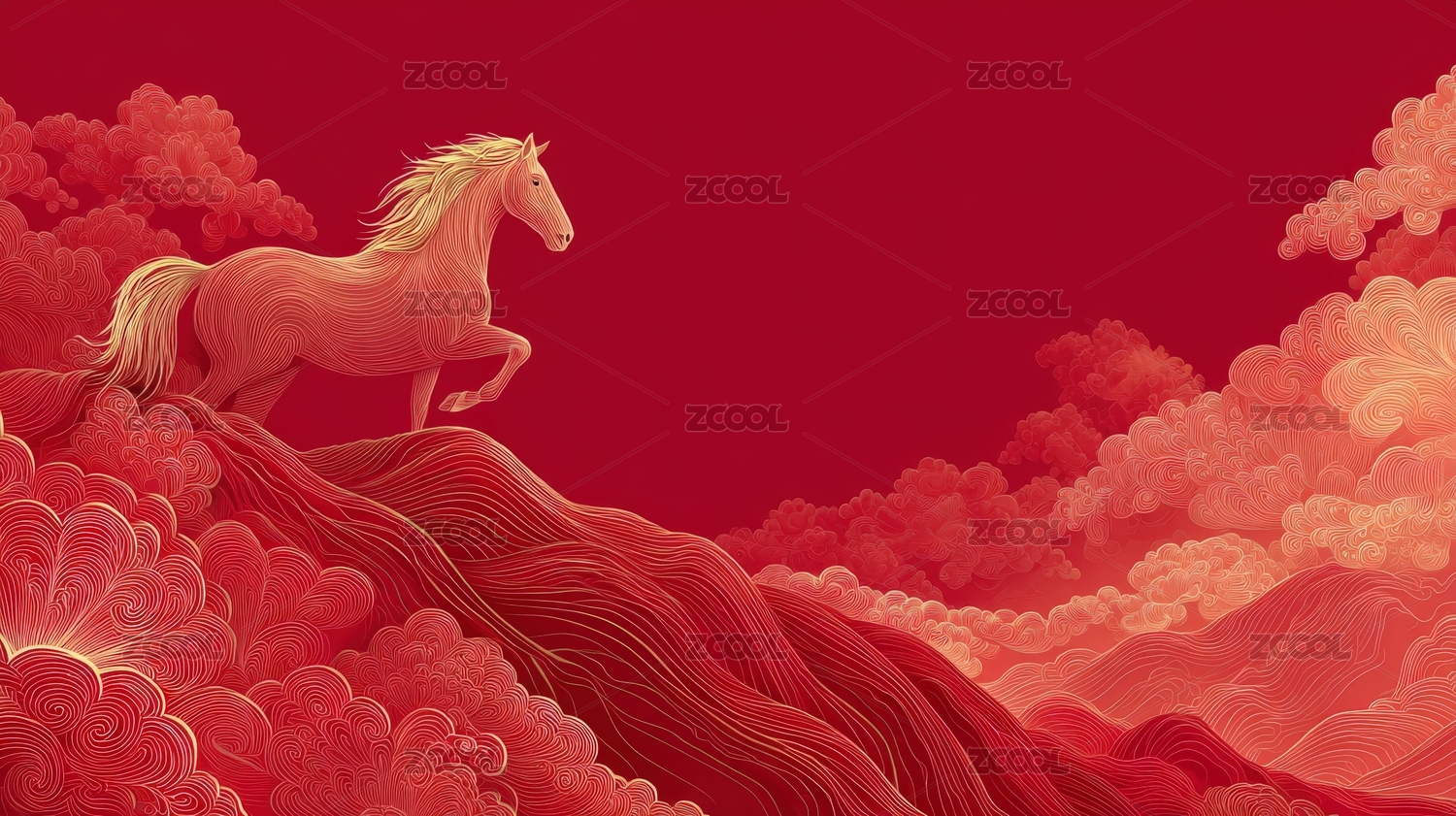 画面,背景,毛发,尾巴,图案,元素,艺术感,金色,线条,红色