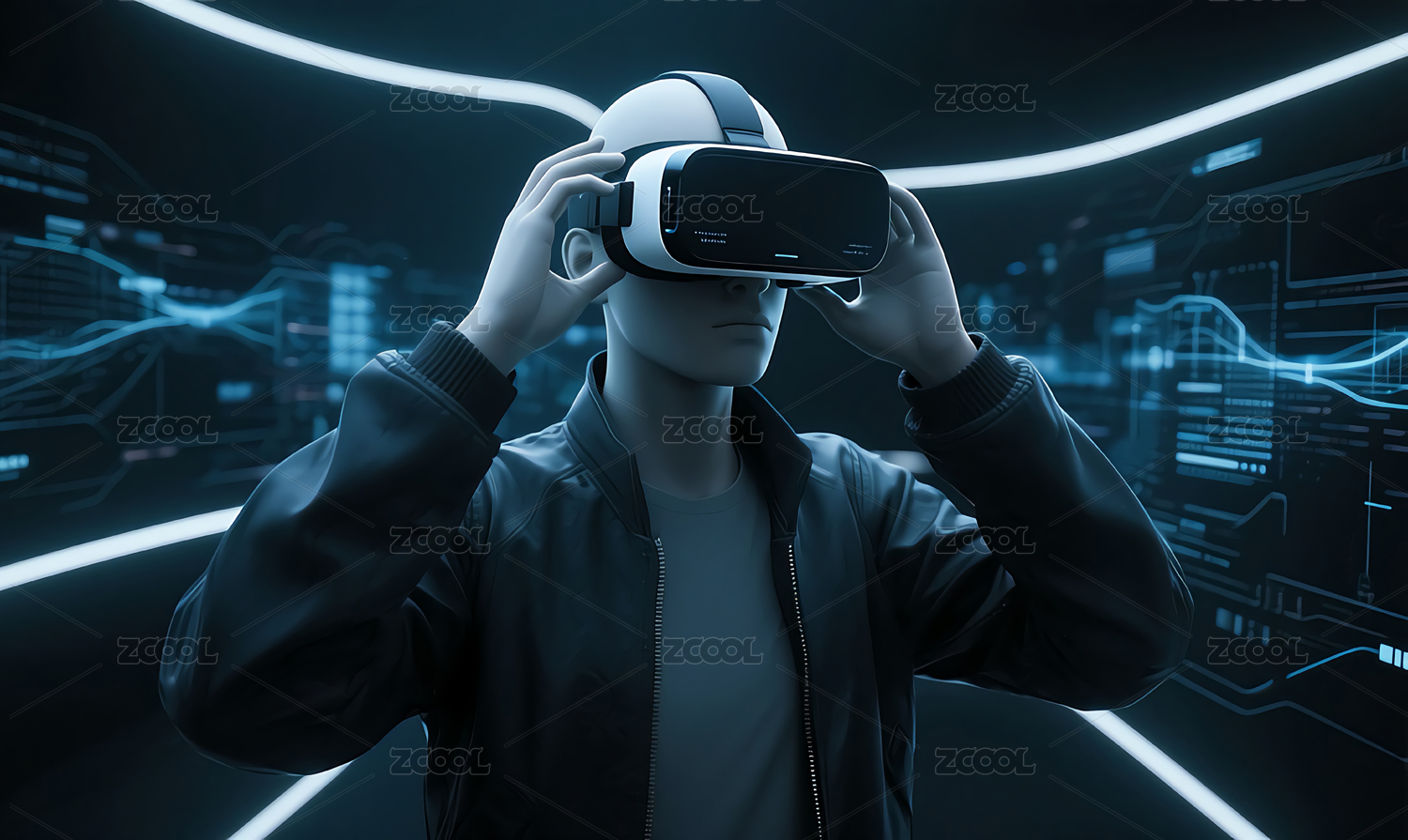虚拟现实头盔科技感人物