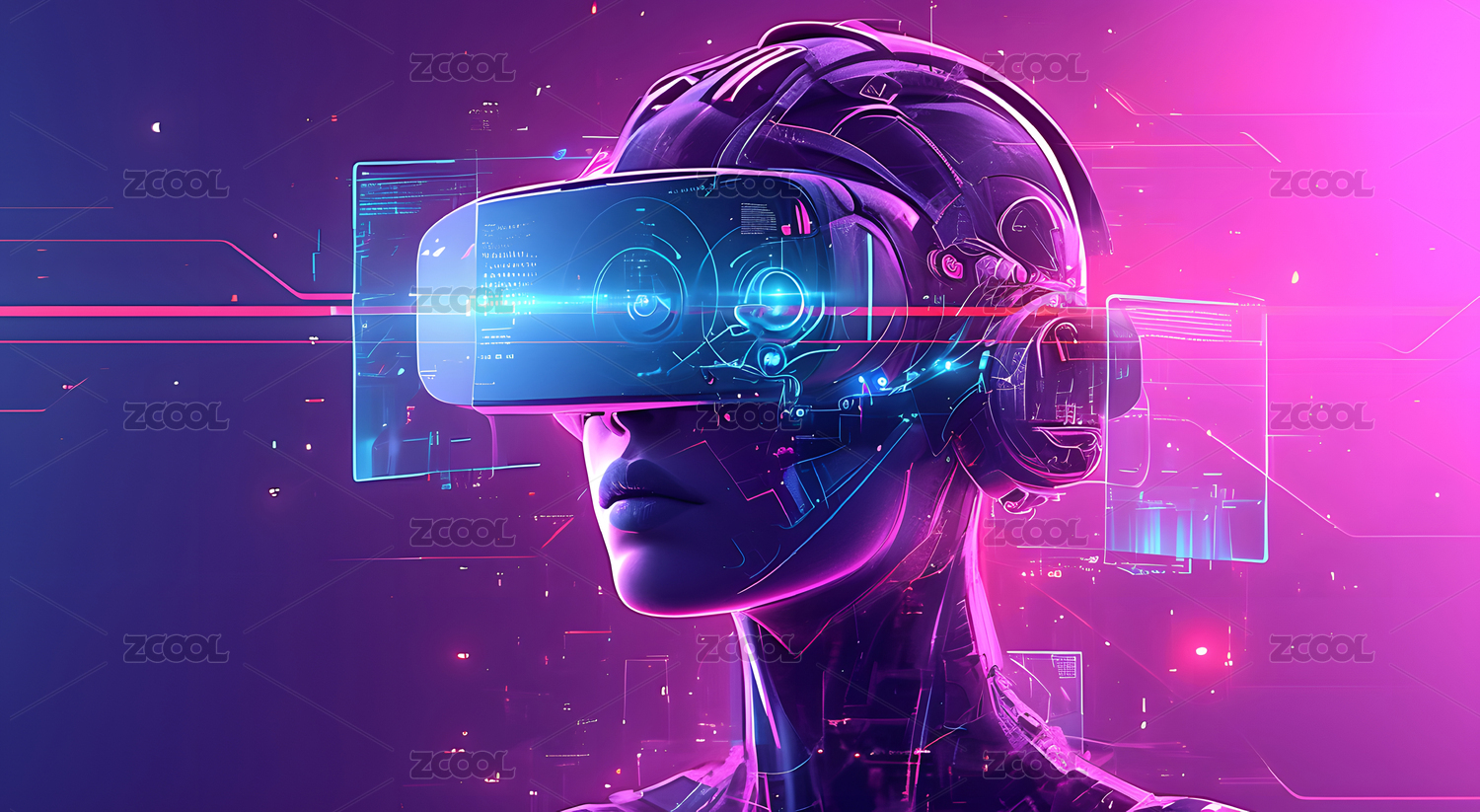 未来戴着VR眼镜的人物概念背景