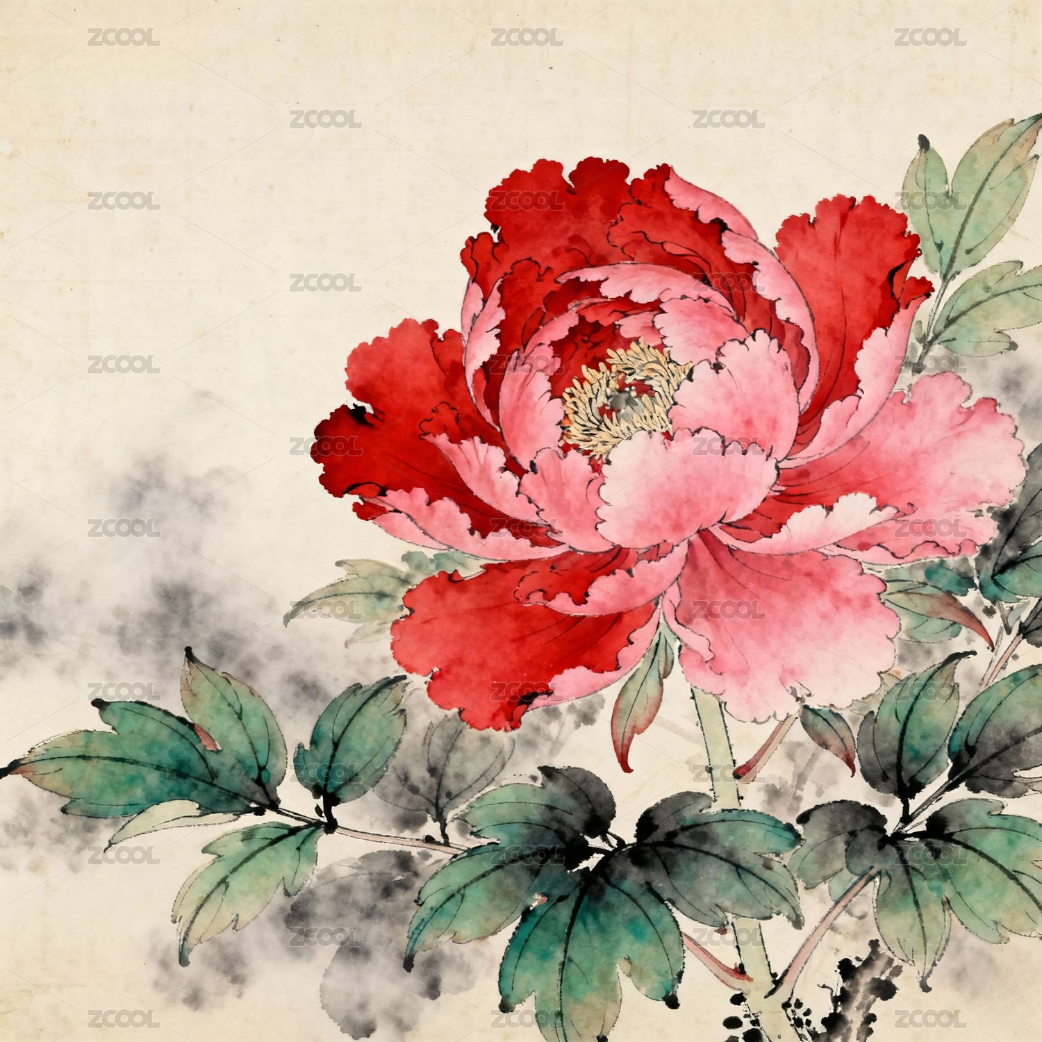 牡丹,水墨画,红色,粉色,富贵,花开,国画,传统,花卉,艺术