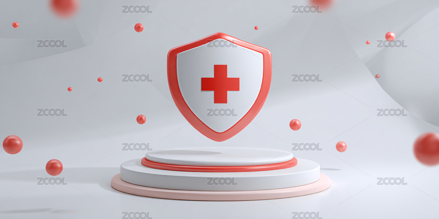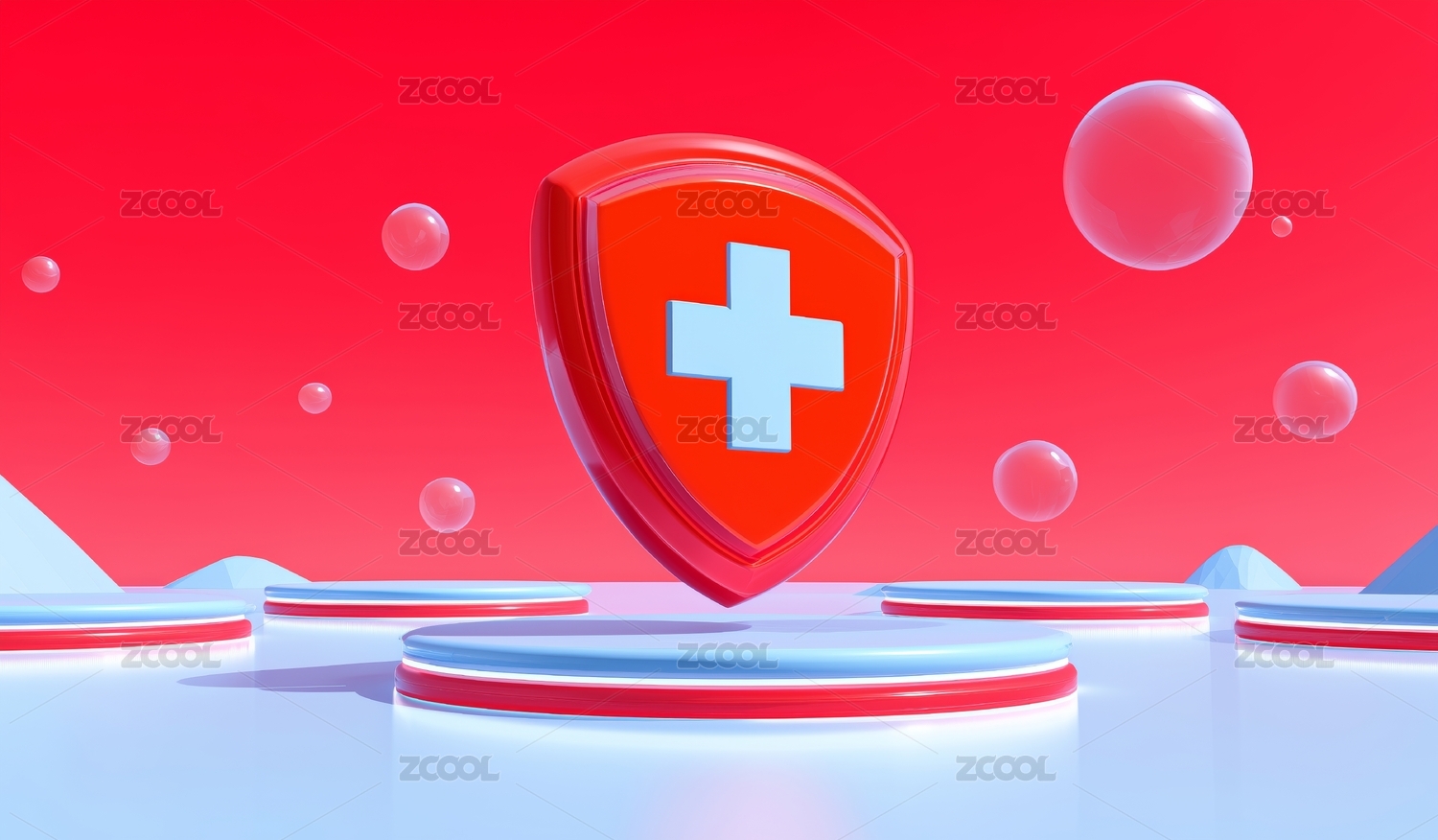 红十字,盾牌,医疗,防护,健康,安全,3D,红色,白色,立体