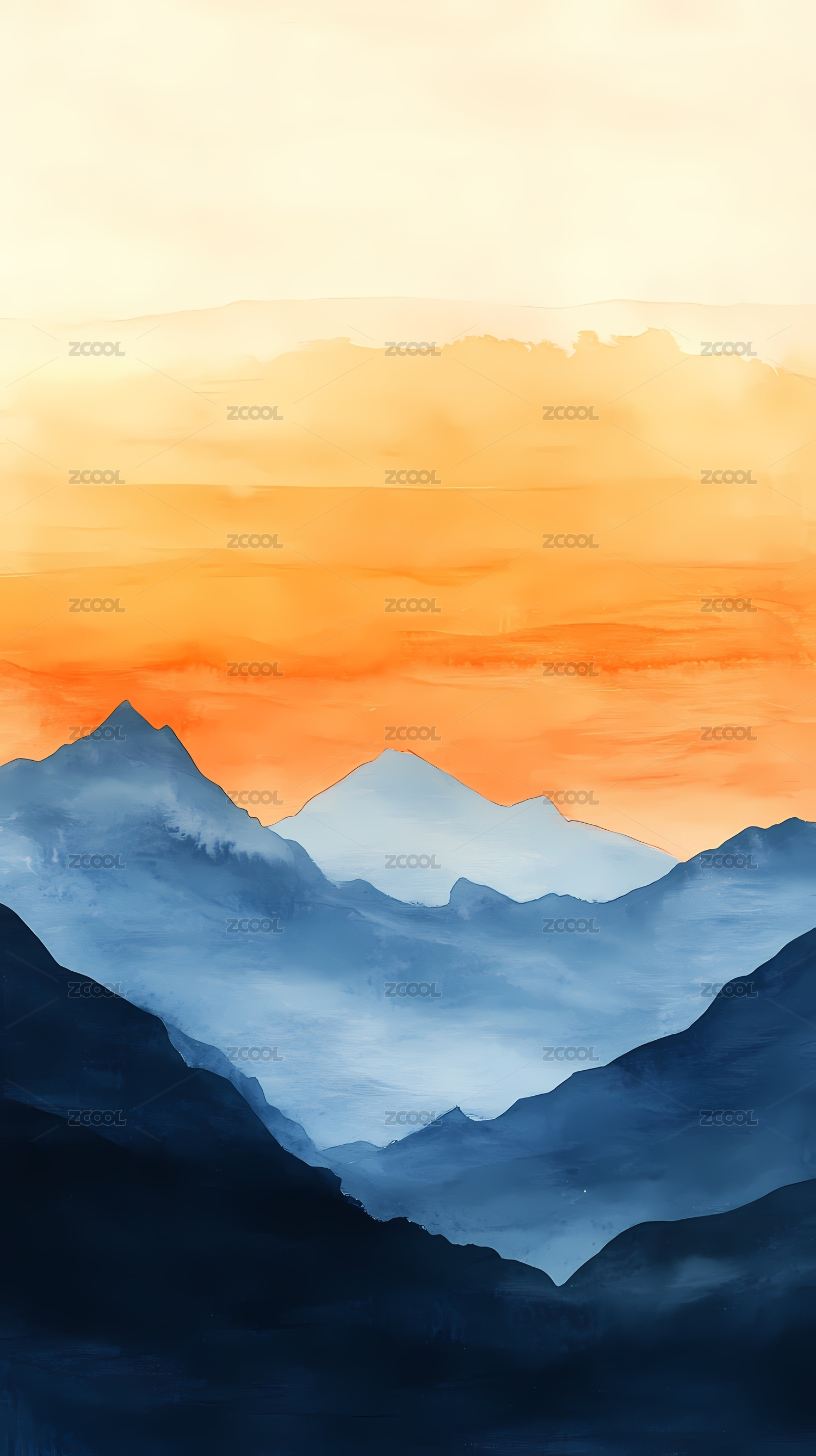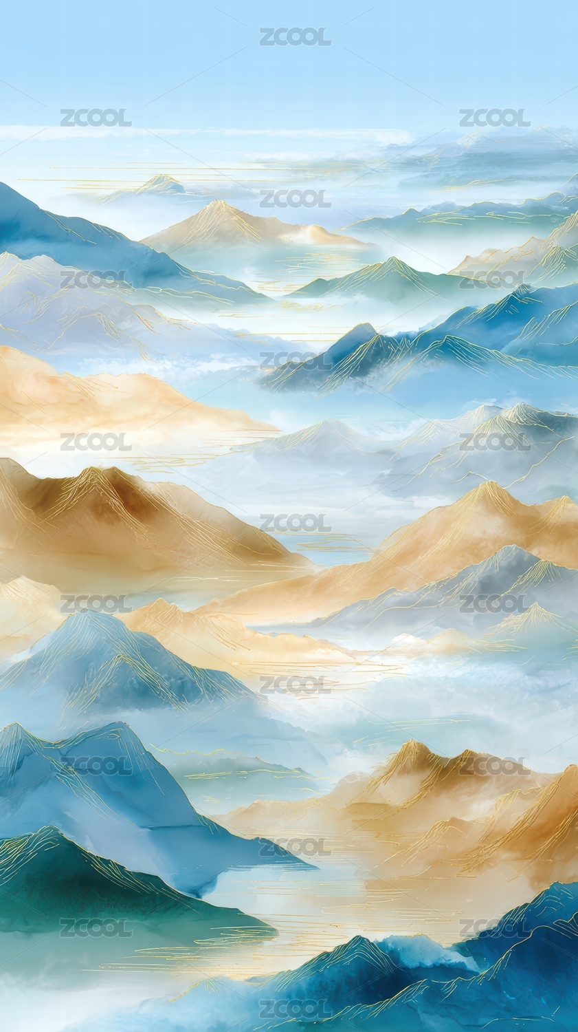 中国风黑绿金色壁画山石云海水墨背景壁纸