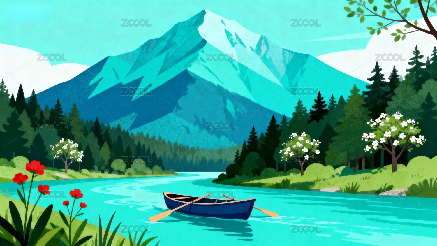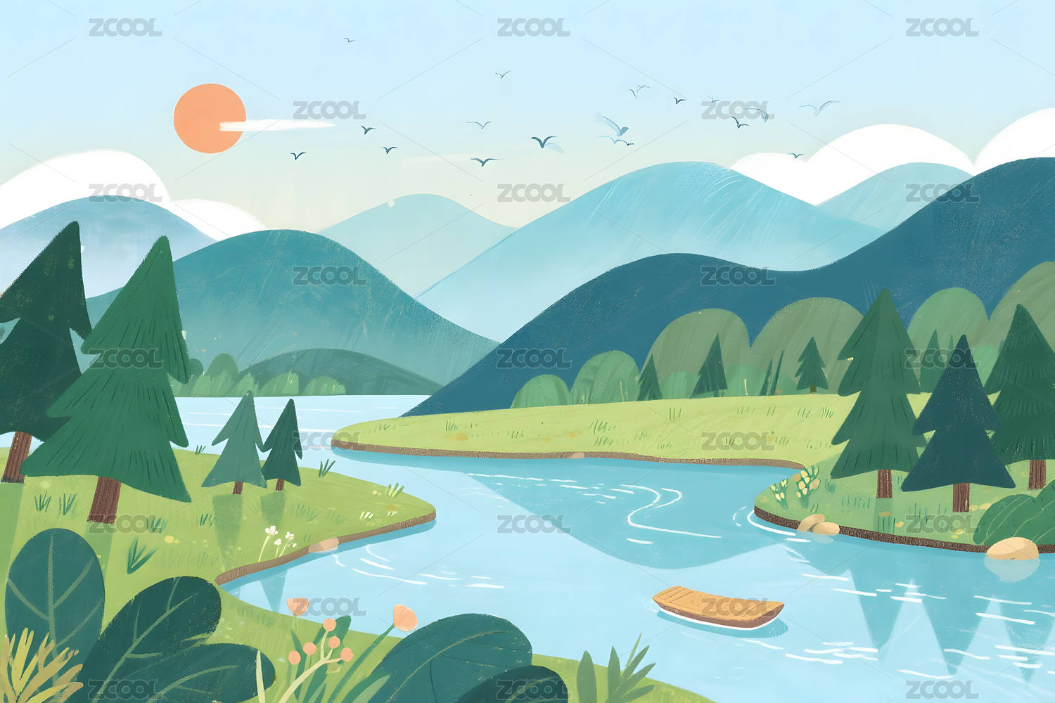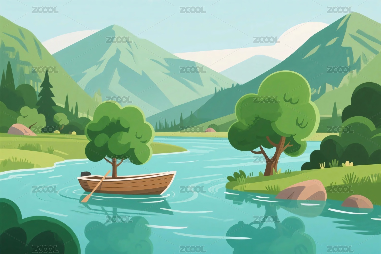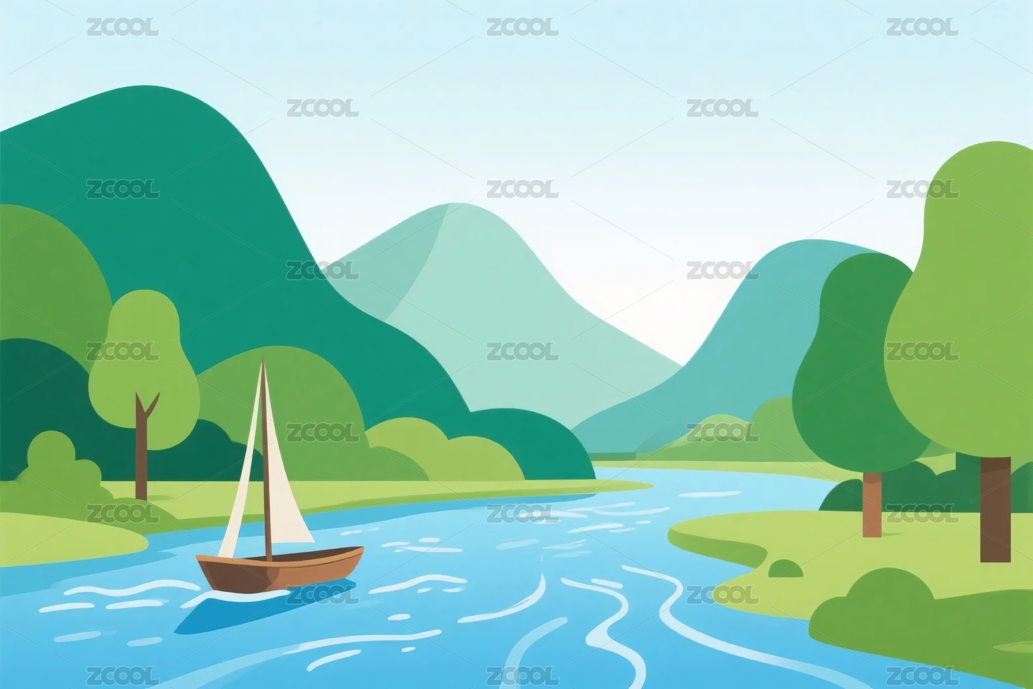 河流,帆船,山水,树木,蓝天,白云,绿地,风景,自然,宁静