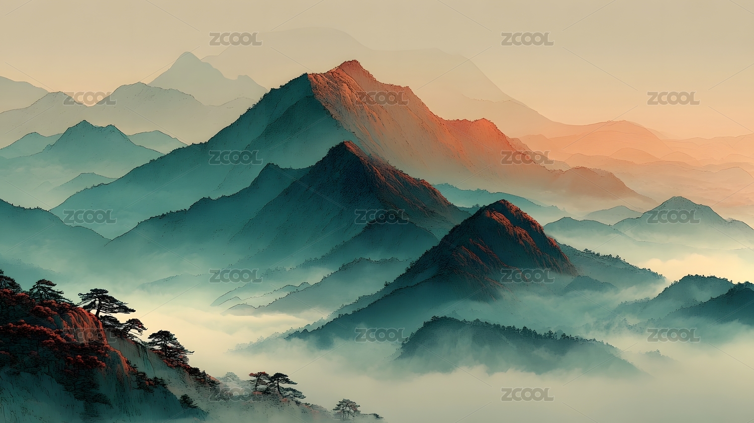 群山,云海,自然风光,美景,插画,画面元素,主题词,景观,自然,山脉