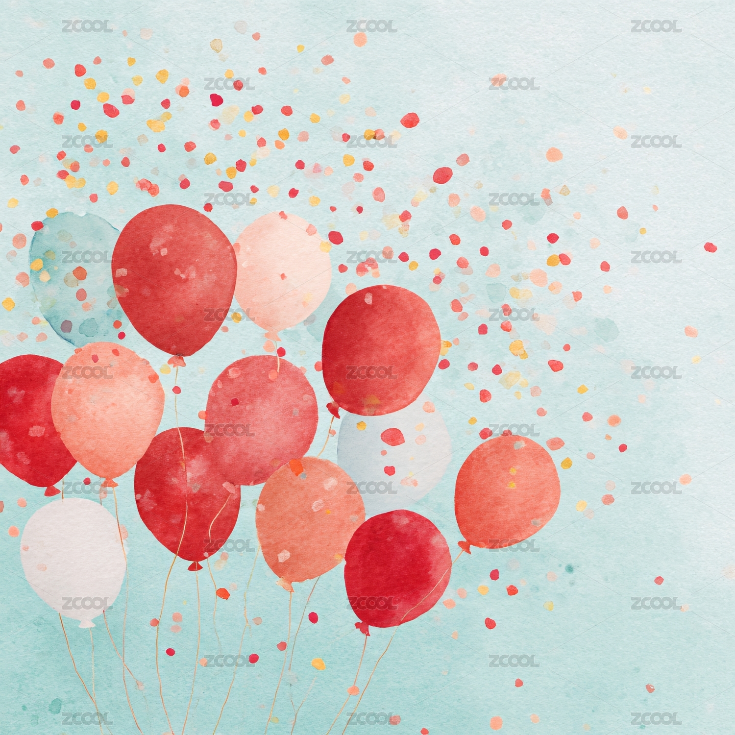 气球,水彩,插画,彩色,装饰,元素,手绘,清新,简约,柔和