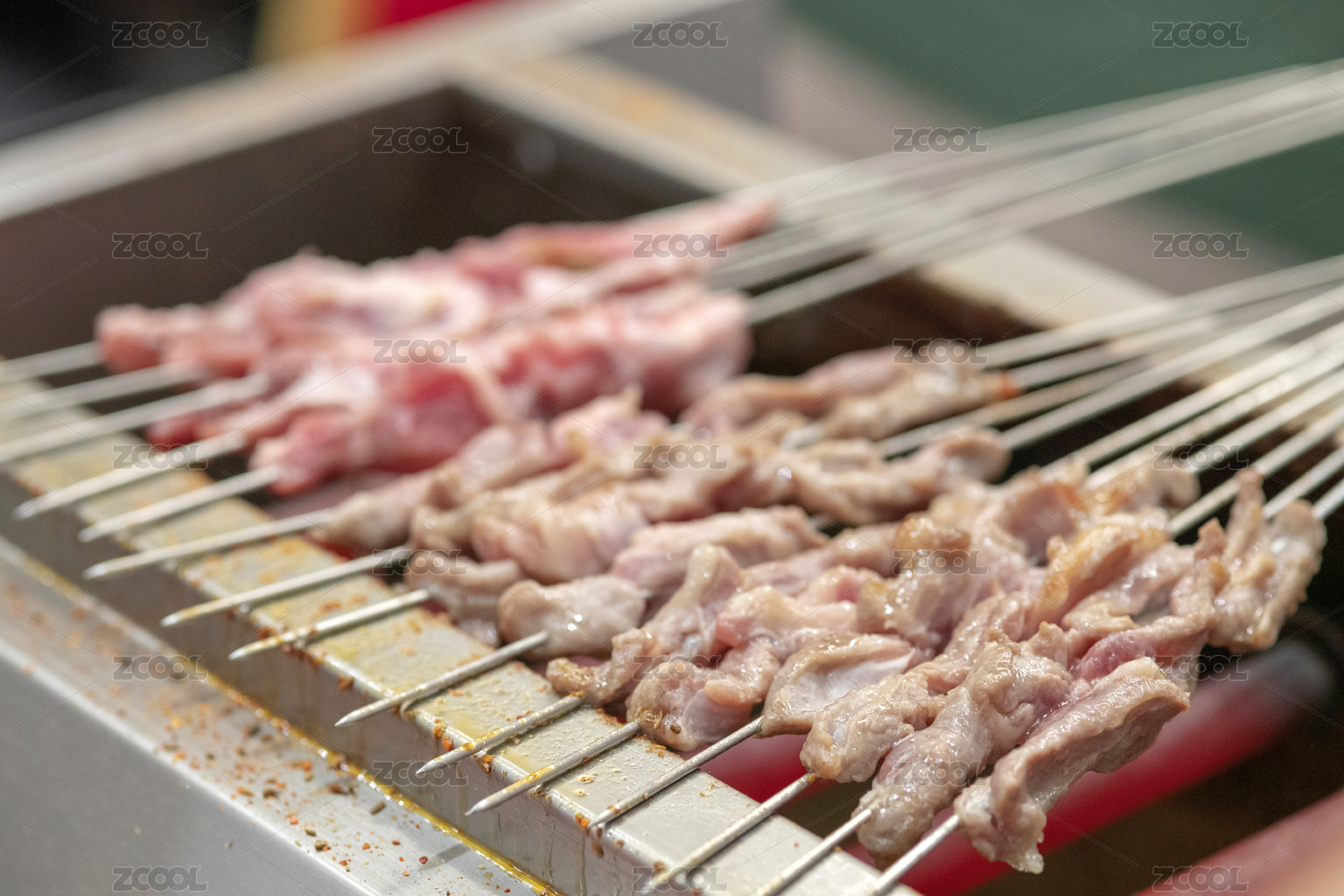 正在烤制未成熟的羊肉串