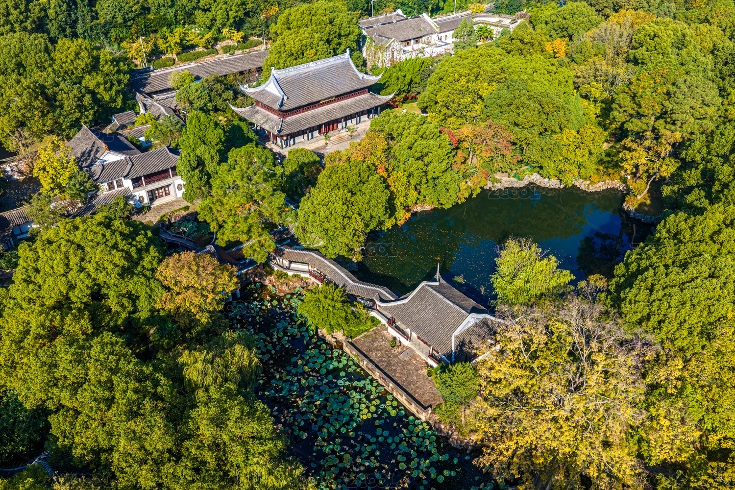 中国江苏苏州政园秋季航拍
